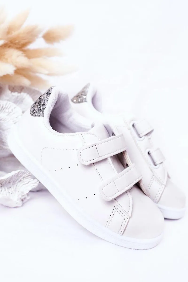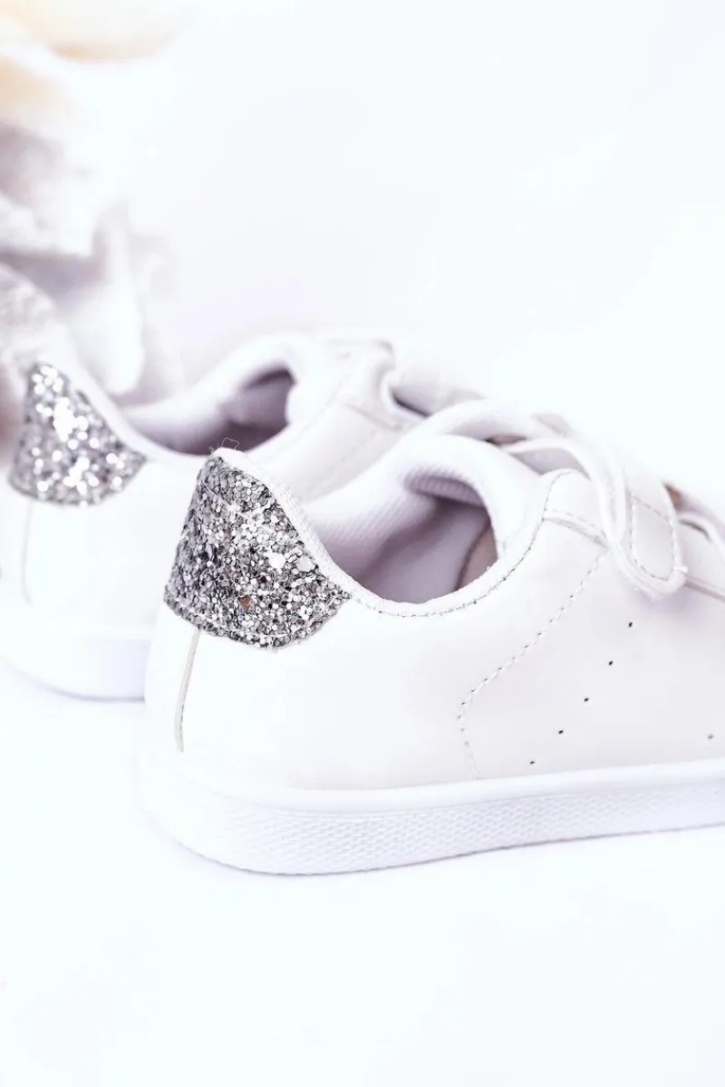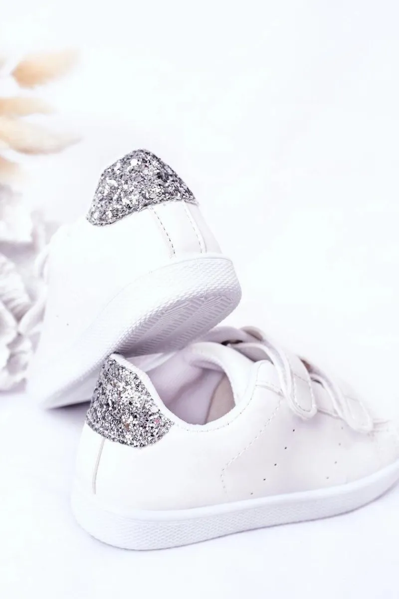 Wyjątkowe tenisówki dziecięce ozdobione brokatem. Trampki wykonane są z eko skóry, dobrze dopasowują się do kształtu stopy dzięki zapięciu na rzep. Koniecznie sprawdź całą naszą kolekcję butów dziecięcych! Rozmiary od 30 do 35 posiadają zapięcie na trzy rzepy. Przy wyborze rozmiaru prosimy sugerować się tabelą rozmiarów.