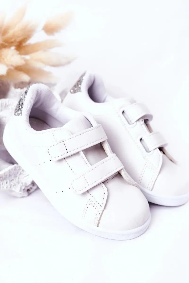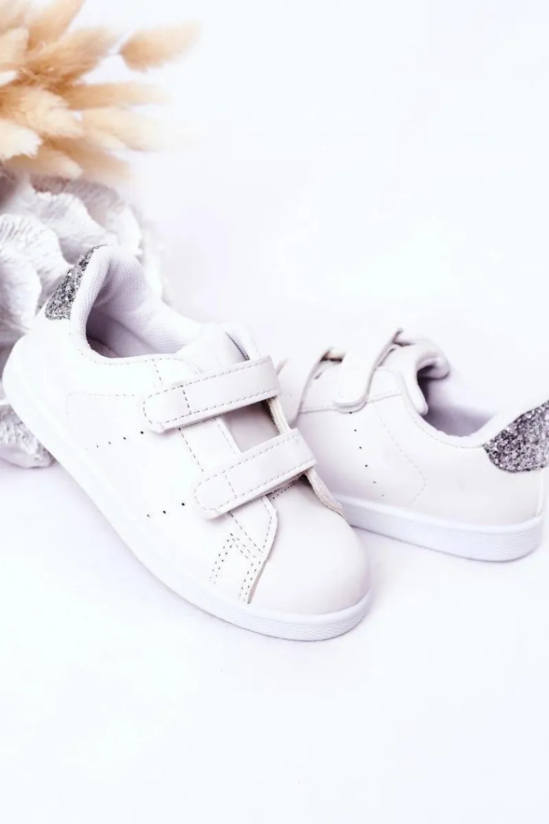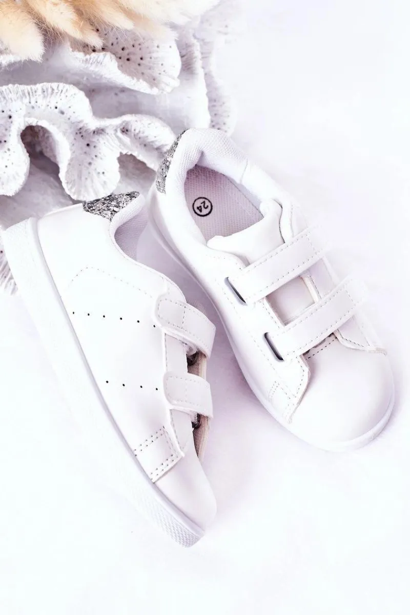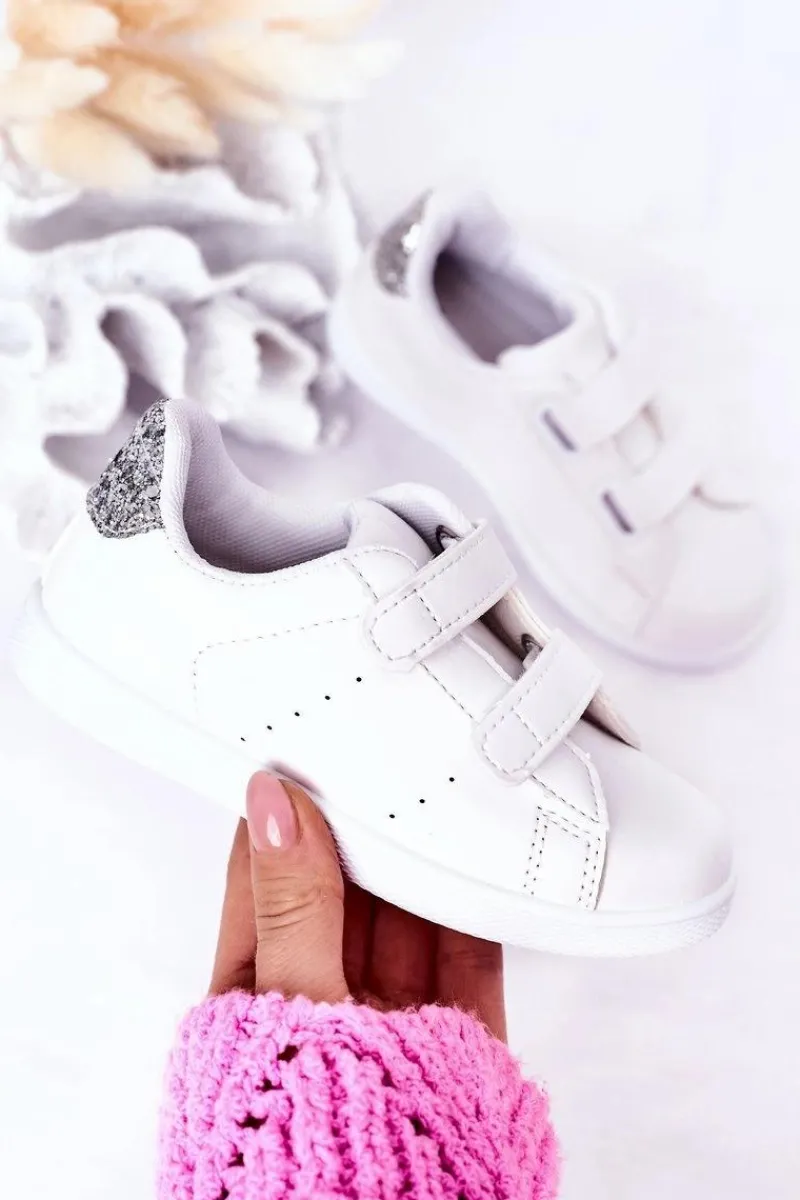 Wyjątkowe tenisówki dziecięce ozdobione brokatem. Trampki wykonane są z eko skóry, dobrze dopasowują się do kształtu stopy dzięki zapięciu na rzep. Koniecznie sprawdź całą naszą kolekcję butów dziecięcych! Rozmiary od 30 do 35 posiadają zapięcie na trzy rzepy. Przy wyborze rozmiaru prosimy sugerować się tabelą rozmiarów.