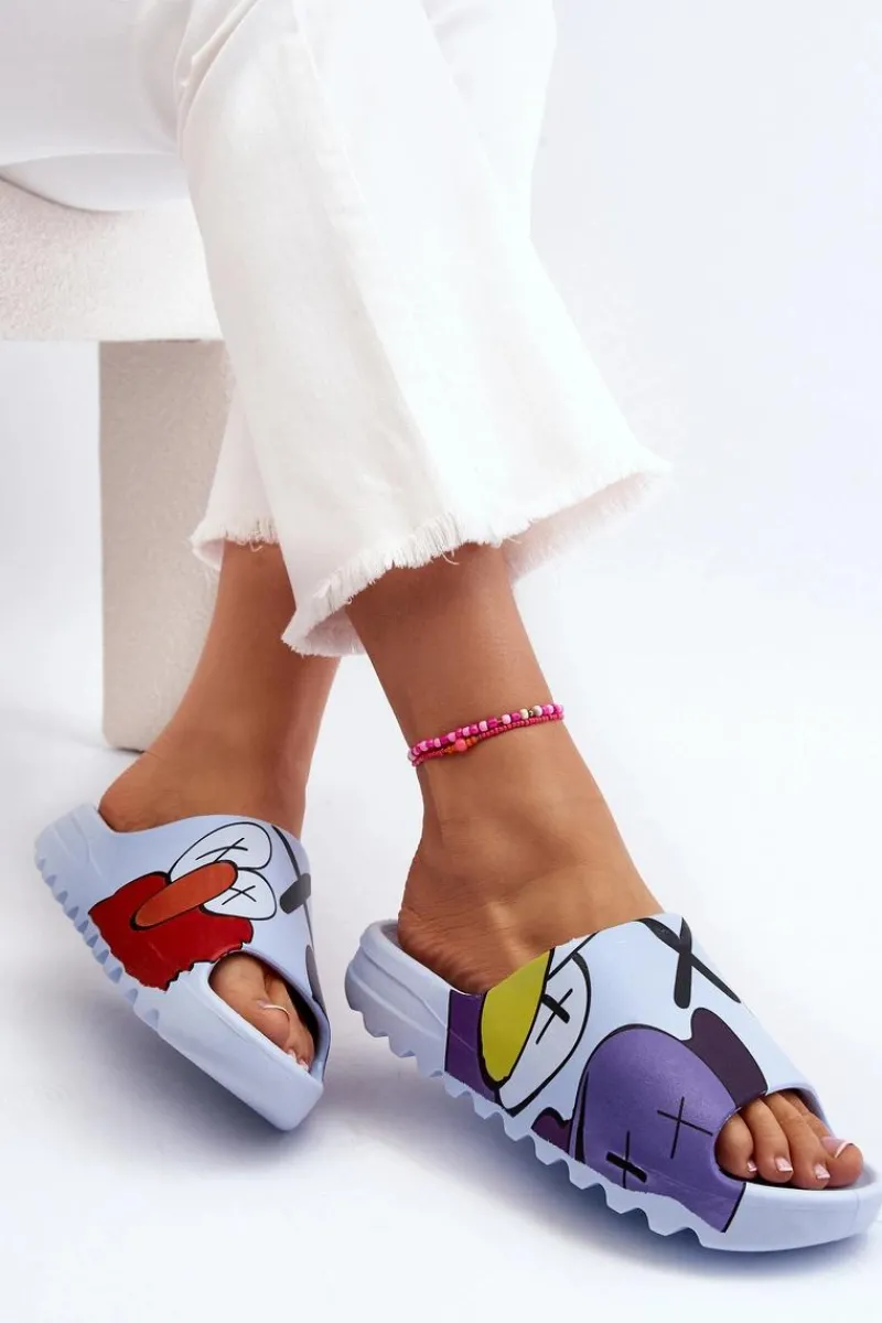 Świetne klapki w kreskówkowy print! Klapki, które możesz używać także zamiast papci! Wykonane z gumowego tworzywa. Buty posiadają delikatnie profilowaną wkładkę. Grubsza podeszwa chroni przed nierównym podłożem. Ciekawy model, którym zaskoczysz wszystkich! Musisz go mieć! Przy wyborze rozmiaru prosimy sugerować się tabelą rozmiarów.