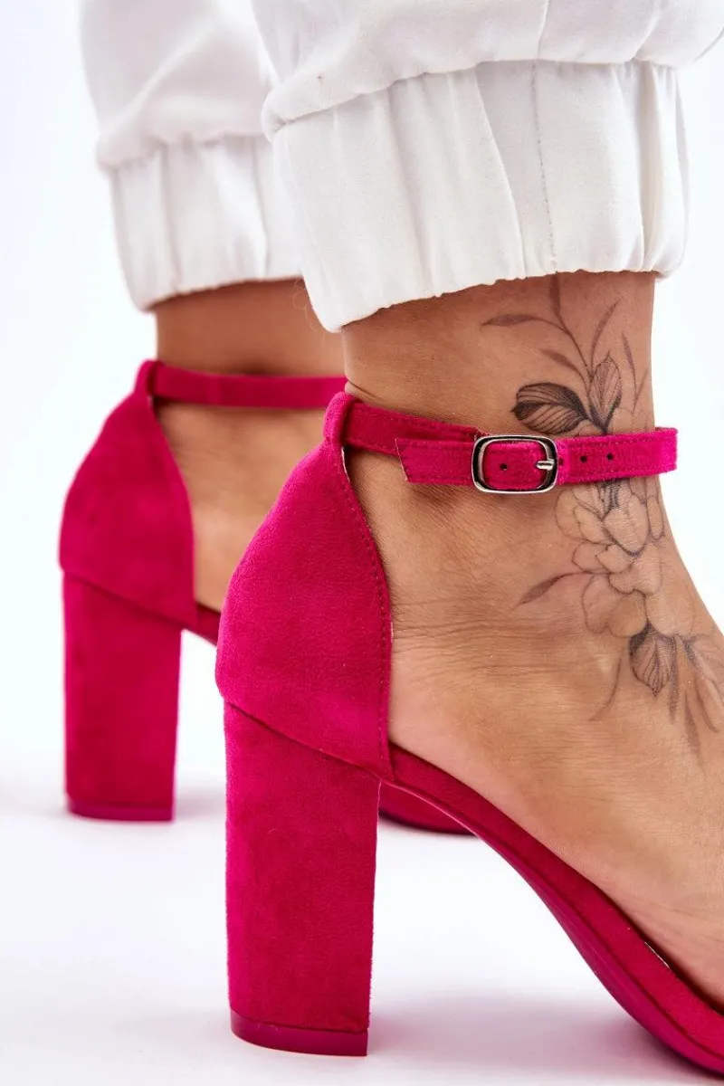 Klasyczne sandały damskie osadzone na obcasie w postaci stabilnego słupka. Buty wykonane zostały z eko zamszu. Komfort podczas użytkowania zapewni miękka, eko skórzana wkładka. Sandałki są zapinane na regulowany pasek ze sprzączką. Buty te posiadają odkryty, migdałowy nosek. Usztywniany zapiętek świetnie ustabilizuje stopę. Koniecznie sprawdź całą naszą kolekcję sandałek na obcasie! Przy wyborze rozmiaru prosimy sugerować się tabelą rozmiarów.