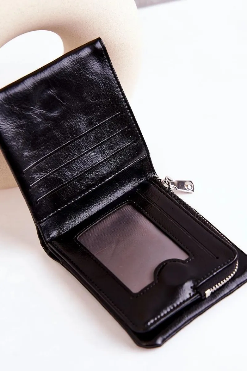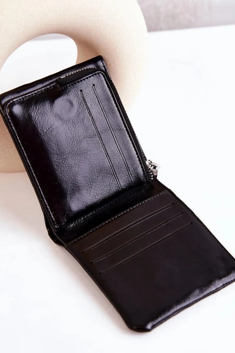 Portfel został wykonany z eko skóry. Jest zapinany na magnes. Posiada miejsce na bilon. W środku znajduje się zapinana na suwak kieszonka. Model ten posiada dużo miejsca na różnego rodzaju wizytówki, prawo jazdy czy dowód osobisty. Dodatkowo jest także miejsce na fotografię. Klasyczny, ponadczasowy wzór – musisz go mieć!