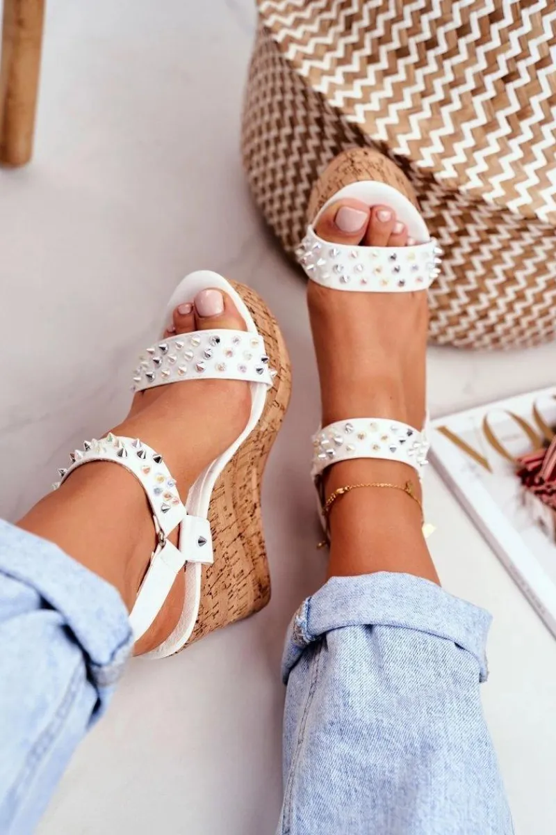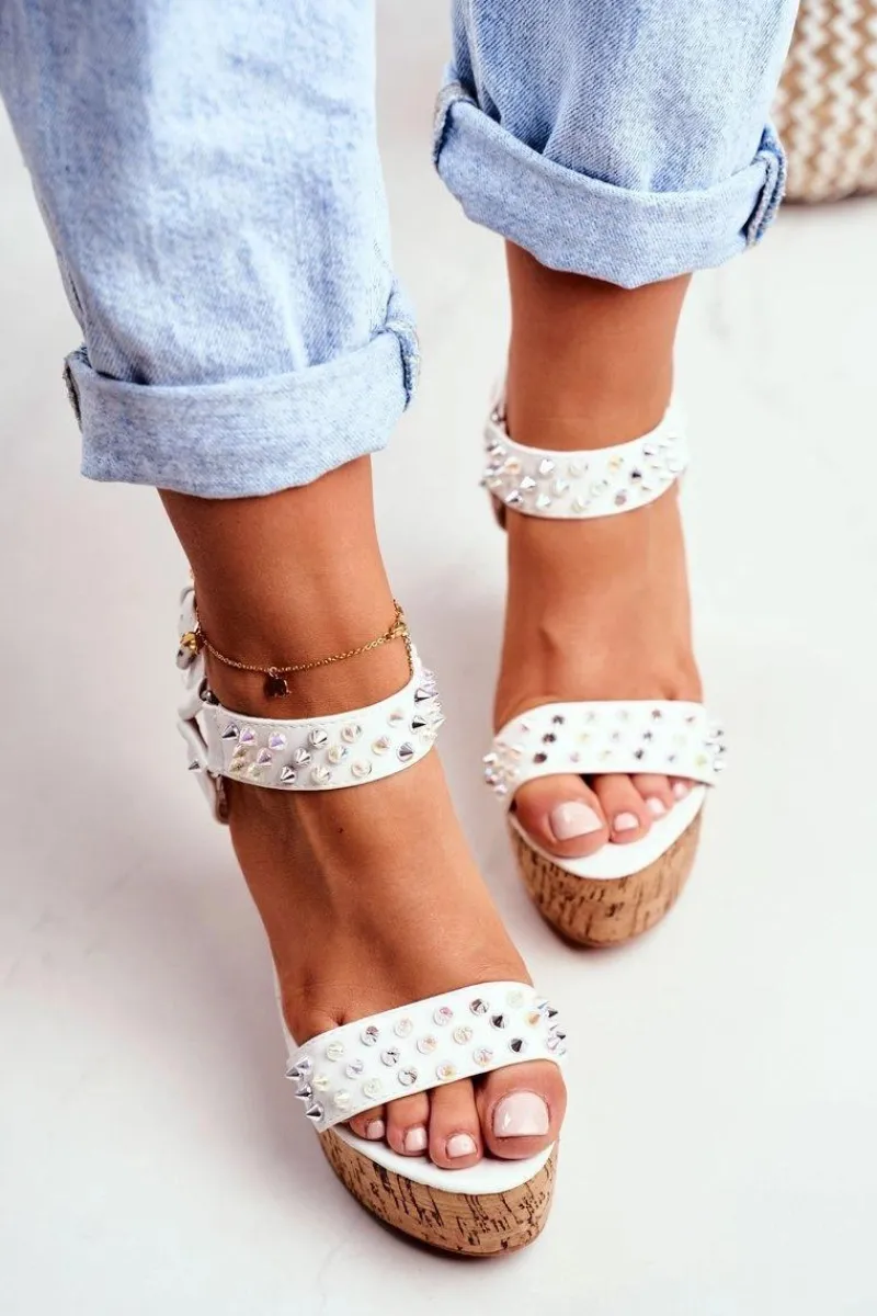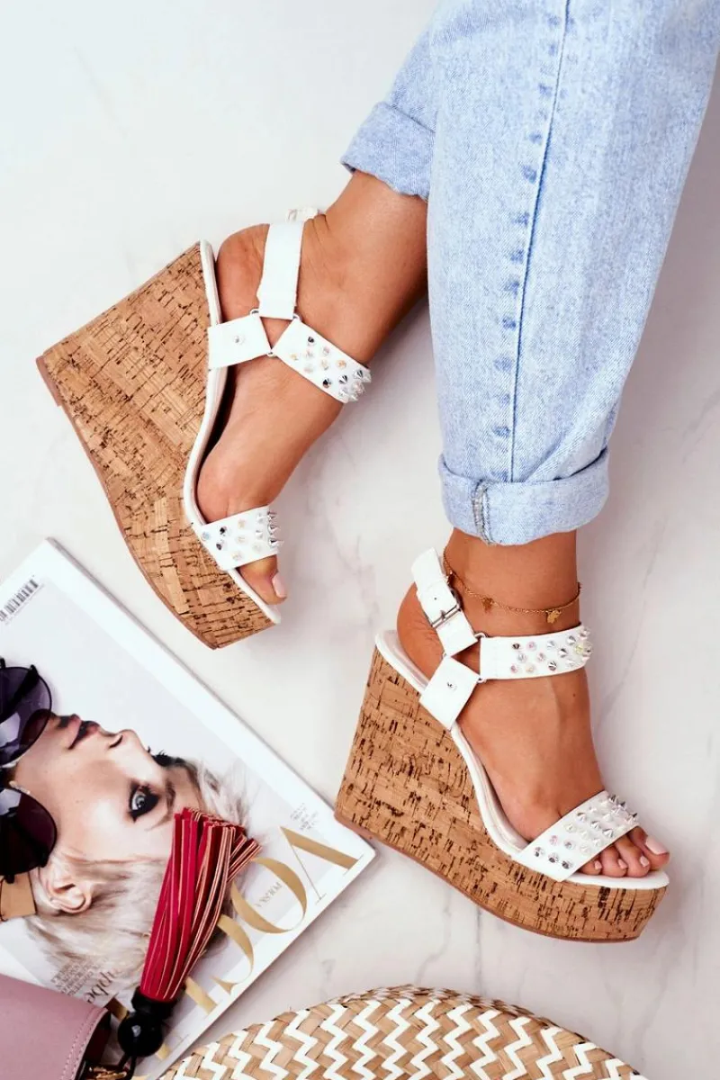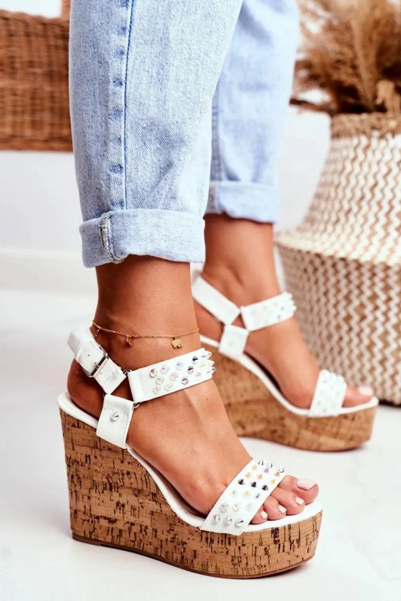 Clearance Boto Sandały Damskie Na Koturnie Lu Boo Białe Gail