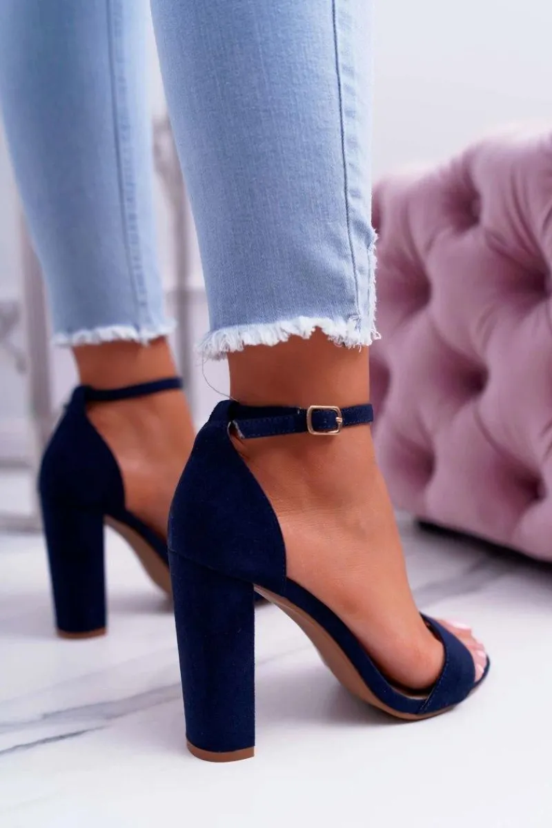 Clearance Boto Sandały Damskie Na Słupku Zamszowe Granatowy Anastasie