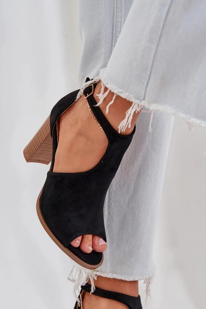 Damskie sandały z eko zamszu łączą w sobie elegancję i komfort. Osadzone na stabilnym słupku, oferują wygodę przez cały dzień. Model ten posiada regulowany pasek ze sprzączką, co umożliwia idealne dopasowanie do stopy. Te sandały to idealny wybór na letnie stylizacje! Przy wyborze rozmiaru prosimy sugerować się tabelą rozmiarów.