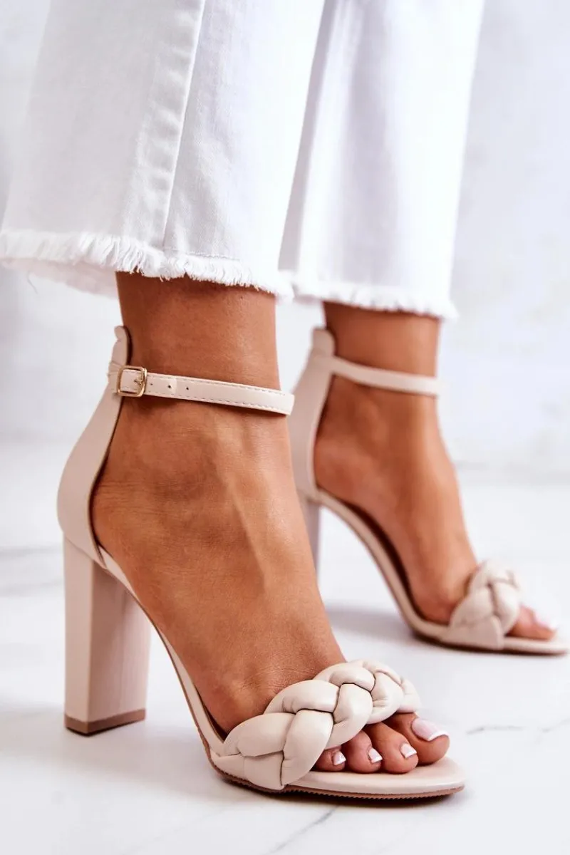 Piękne sandały na obcasie zostały wykonane z eko skóry. Miękka wkładka oraz wygodny obcas zapewnią komfort. Uroczy, przeplatany warkocz na przodzie dodaje tym butom elegancji. Buty posiadają regulowany pasek zapinany na sprzączkę. Koniecznie sprawdź całą naszą kolekcję damskich sandałów! Przy wyborze rozmiaru prosimy sugerować się tabelą rozmiarów.