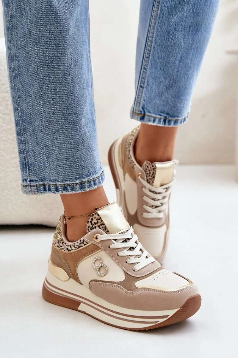Stylowe sportowe buty wykonane z eko skóry, osadzone na platformie dla dodatkowego komfortu. Cholewka zdobiona subtelnymi detalami, które dodają im wyjątkowego charakteru. Idealne do codziennych stylizacji. Przy wyborze rozmiaru prosimy kierować się tabelą rozmiarów.