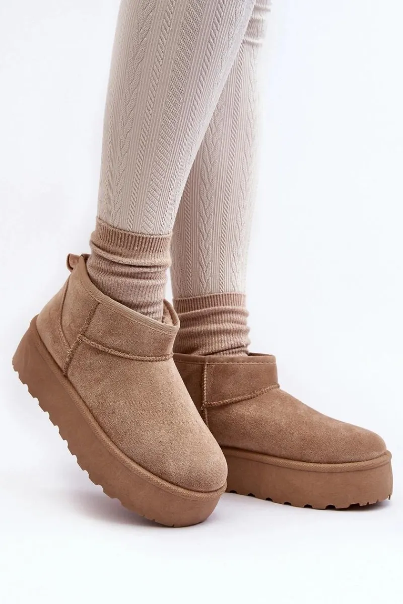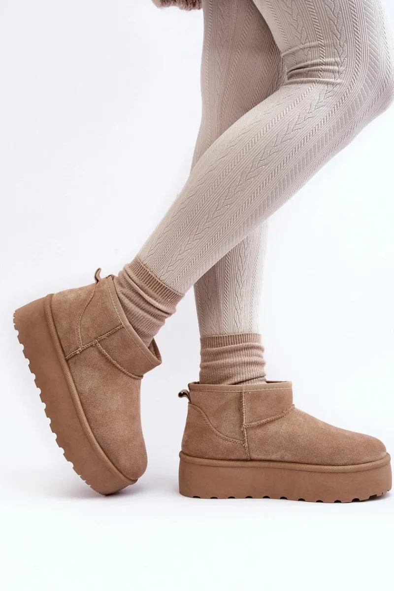 Śniegowce damskie osadzona na grubej platformie, która świetnie odizoluje od zimnego podłoża. Wykonane z eko zamszu. Środek ocieplony futerkiem. Cholewka za kostkę. Ten modny model dopasujesz do wielu jesienno-zimowych stylizacji! Przy wyborze rozmiaru prosimy sugerować się tabelą rozmiarów.