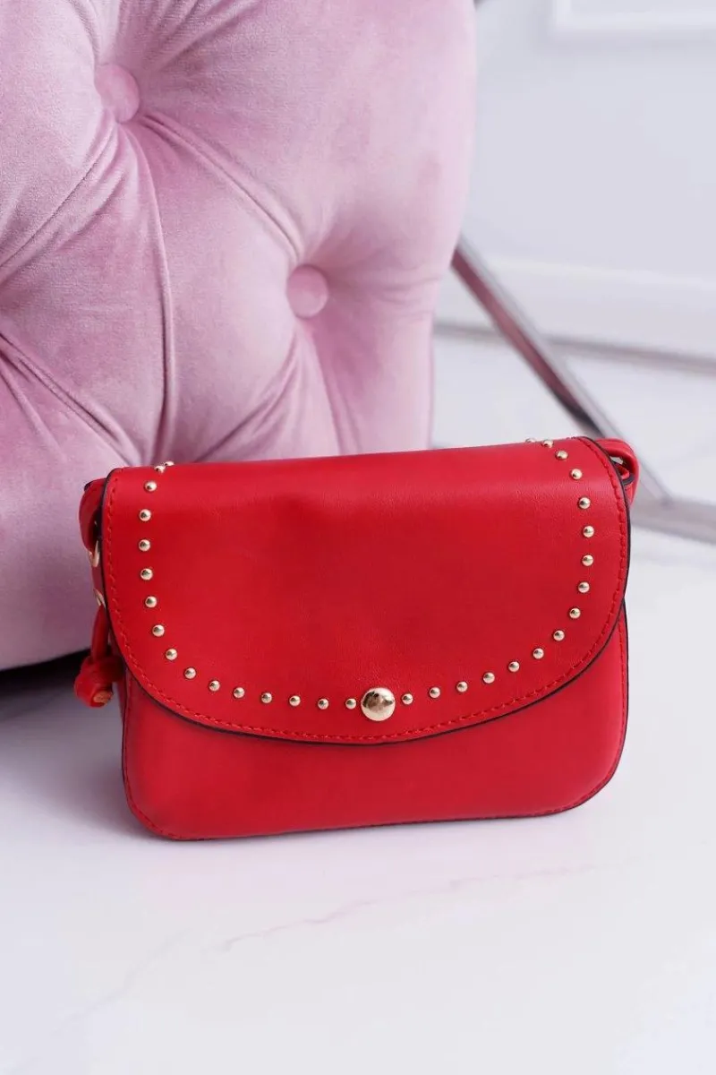 Clearance Boto Torebka Damska Mała Kuferek Złote Nity Czerwona