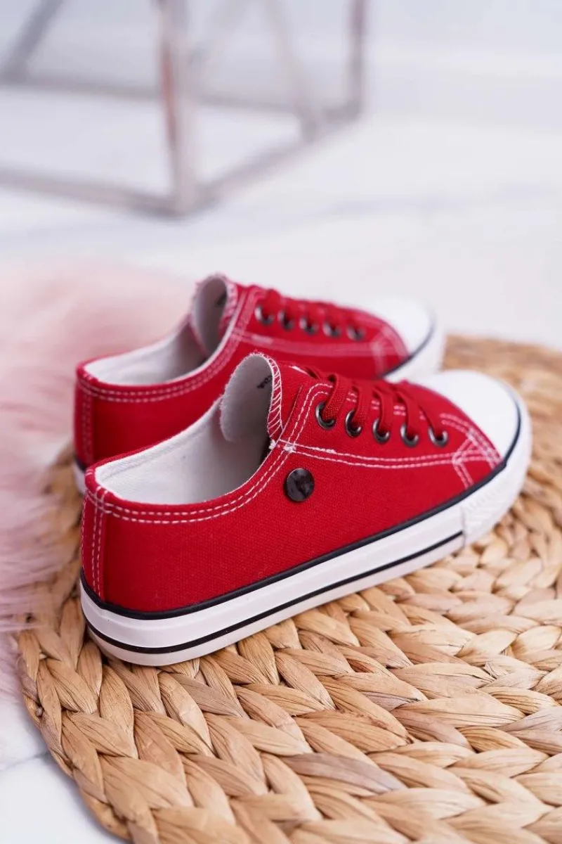 Clearance Boto Trampki Młodzieżowe Damskie Buty Czerwone Justika