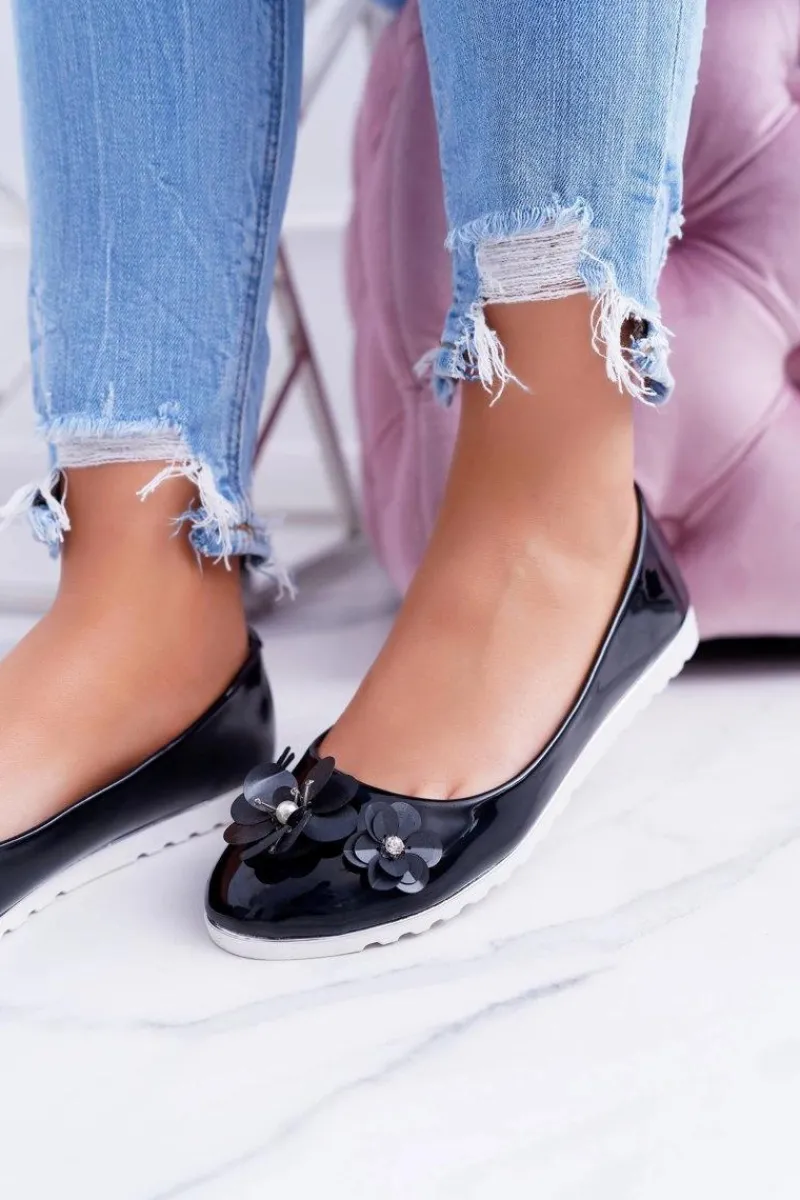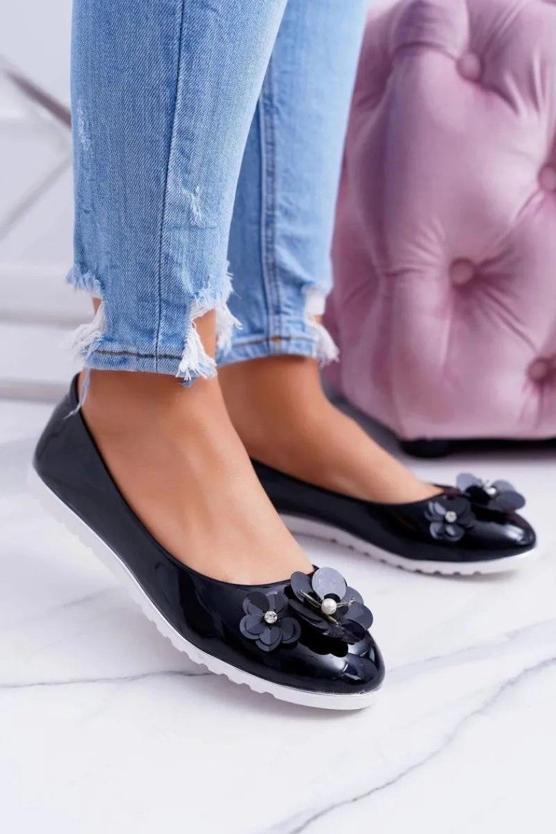 Clearance Boto Vices | Lakierowane Czarne Damskie Balerinki Z Kwiatkiem Neli