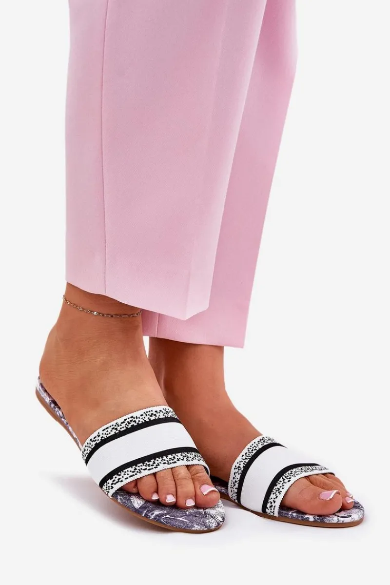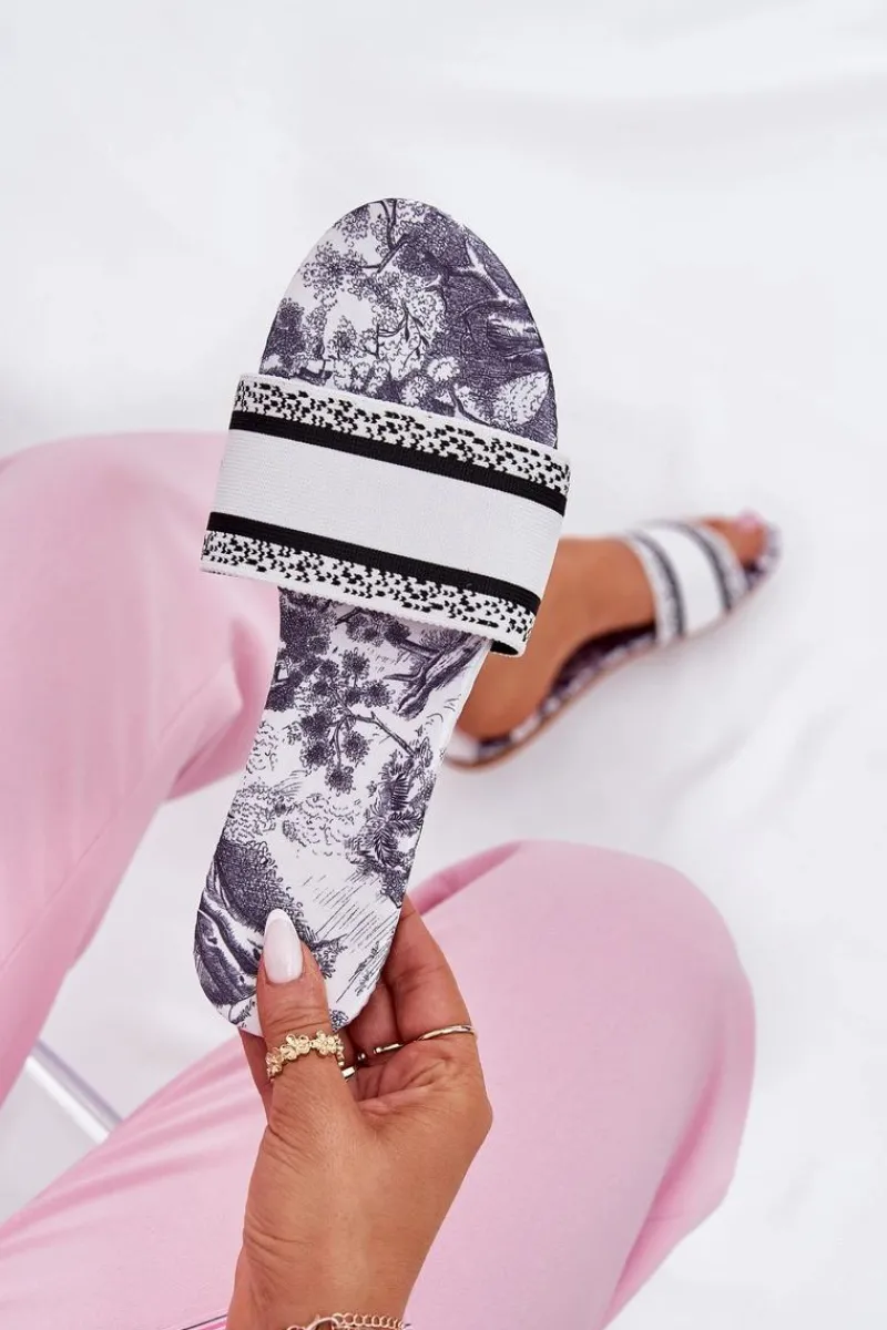 Płaskie klapki damskie wykonane z materiału tekstylnego, które wyróżniają się unikalnym wzorem, dodającym im wyjątkowego charakteru. Te klapki są idealne na ciepłe dni, doskonale pasują do letnich sukienek, spódnic czy szortów, wprowadzając do codziennych stylizacji lekkość, kolor i modowy akcent. Idealne zarówno na plażę, jak i na spacery po mieście. Przy wyborze rozmiaru prosimy sugerować się tabelą rozmiarów.