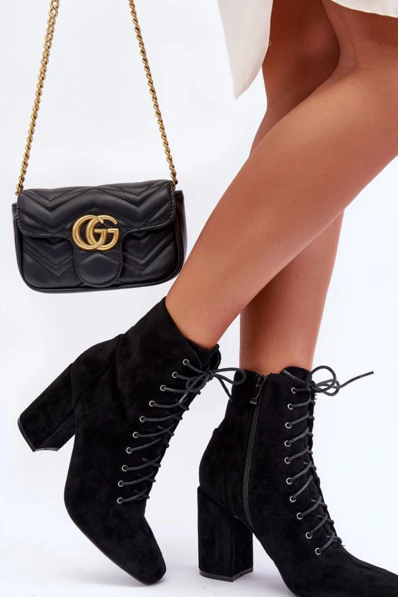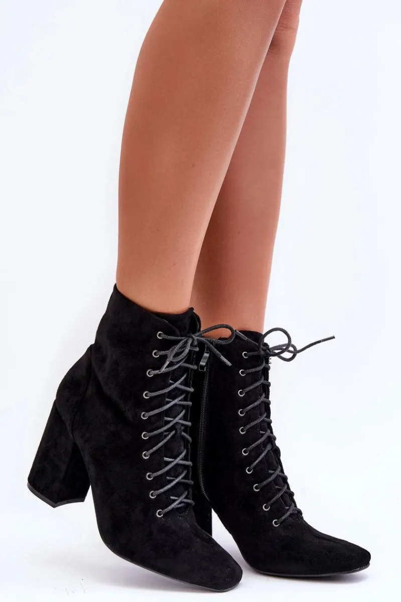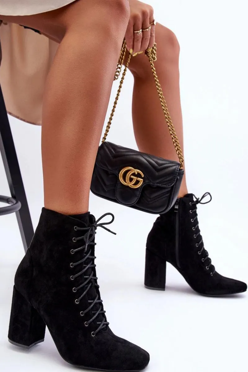 Klasyczne damskie botki zostały wykonane z eko zamszu. Osadzone na obcasie w postaci słupka. Buty te posiadają usztywniany zapiętek. Zapinane są na zamek i posiadają dodatkowe sznurowanie co umożliwia lepsze dopasowanie buta do tęgości nogi. Przy wyborze rozmiaru prosimy sugerować się tabelą rozmiarów.