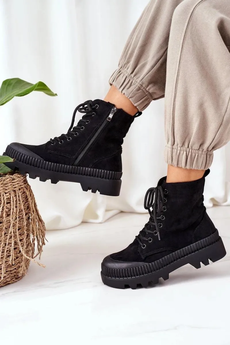 Workery damskie wykonane z eko zamszu. Wszyty suwak ułatwi zakładanie. Przy wyborze rozmiaru prosimy sugerować się tabelą rozmiarów.