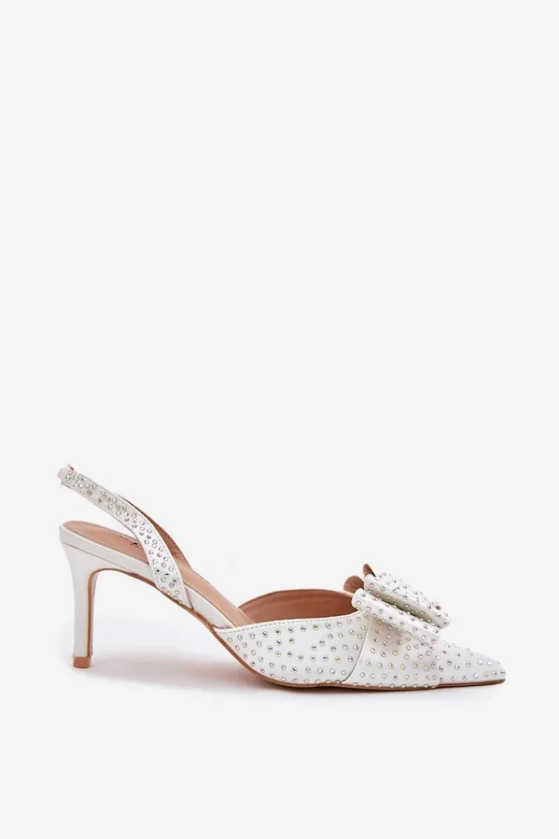 Zdobione szpilki damskie z odkrytą piętą to elegancka i stylowa propozycja na wyjątkowe okazje. Szpiczaste noski podkreślają smukłość sylwetki, a kokardka z przodu dodaje uroku i subtelności. Miękka wkładka zapewnia komfort przez cały dzień, łącząc wygodę z modnym wyglądem. Idealne na wieczorne wyjścia, wesela czy inne formalne uroczystości. Przy wyborze rozmiaru prosimy sugerować się tabelą rozmiarów.