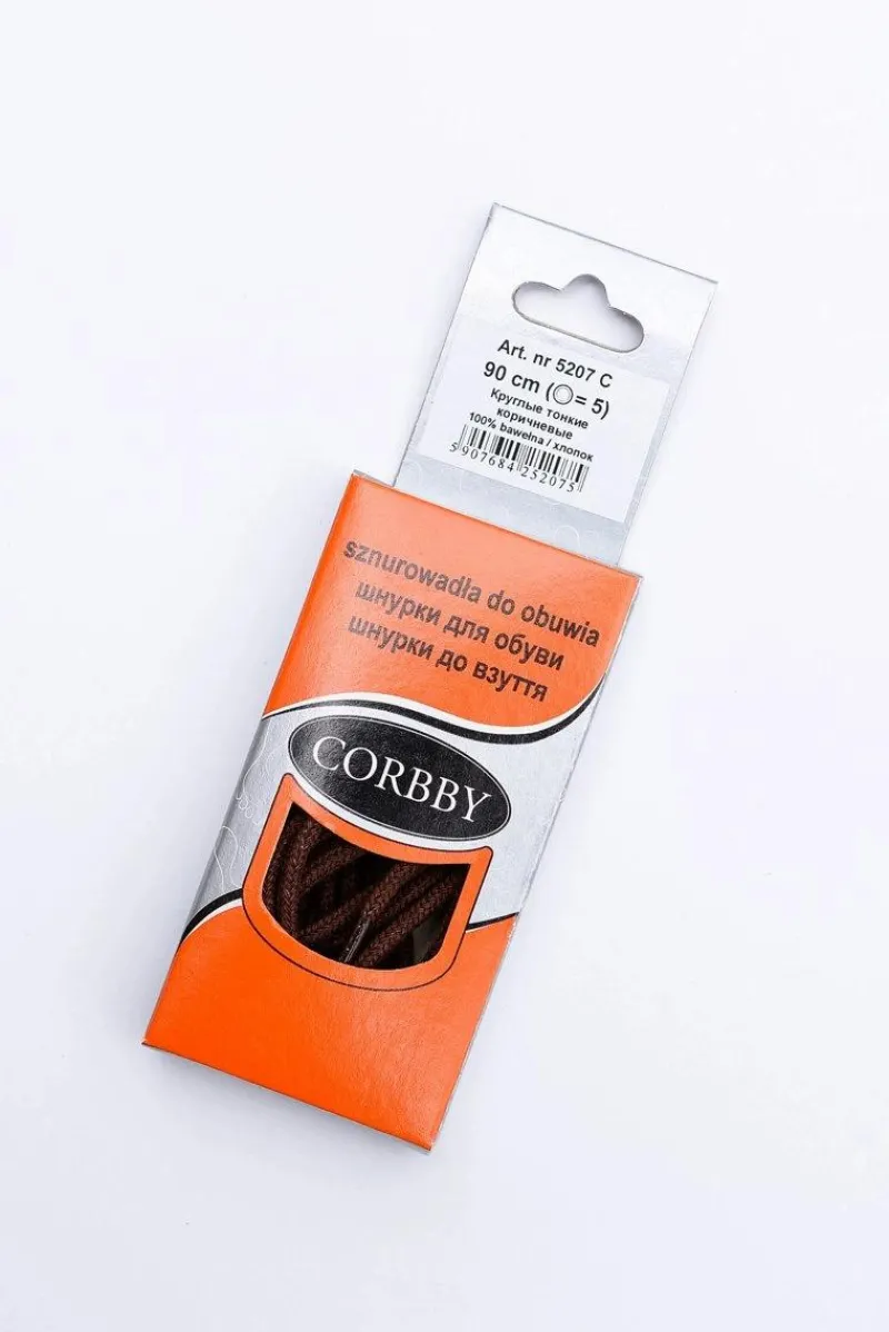 Okrągłe, cienkie sznurowadła dostępne w różnych długościach i kolorach. Polskiej produkcji, firmy Corbby, wykonane w 100% z bawełny. Przeznaczone do wszelkiego rodzaju obuwia.