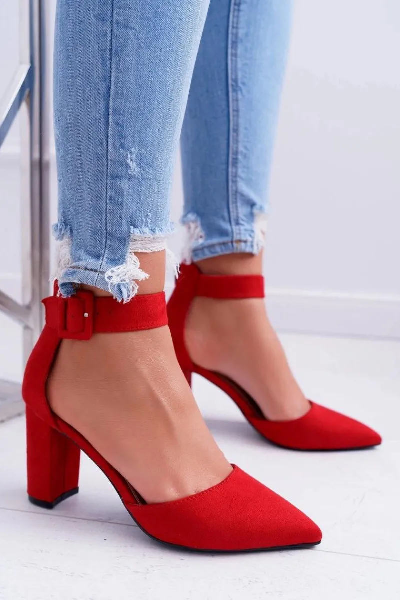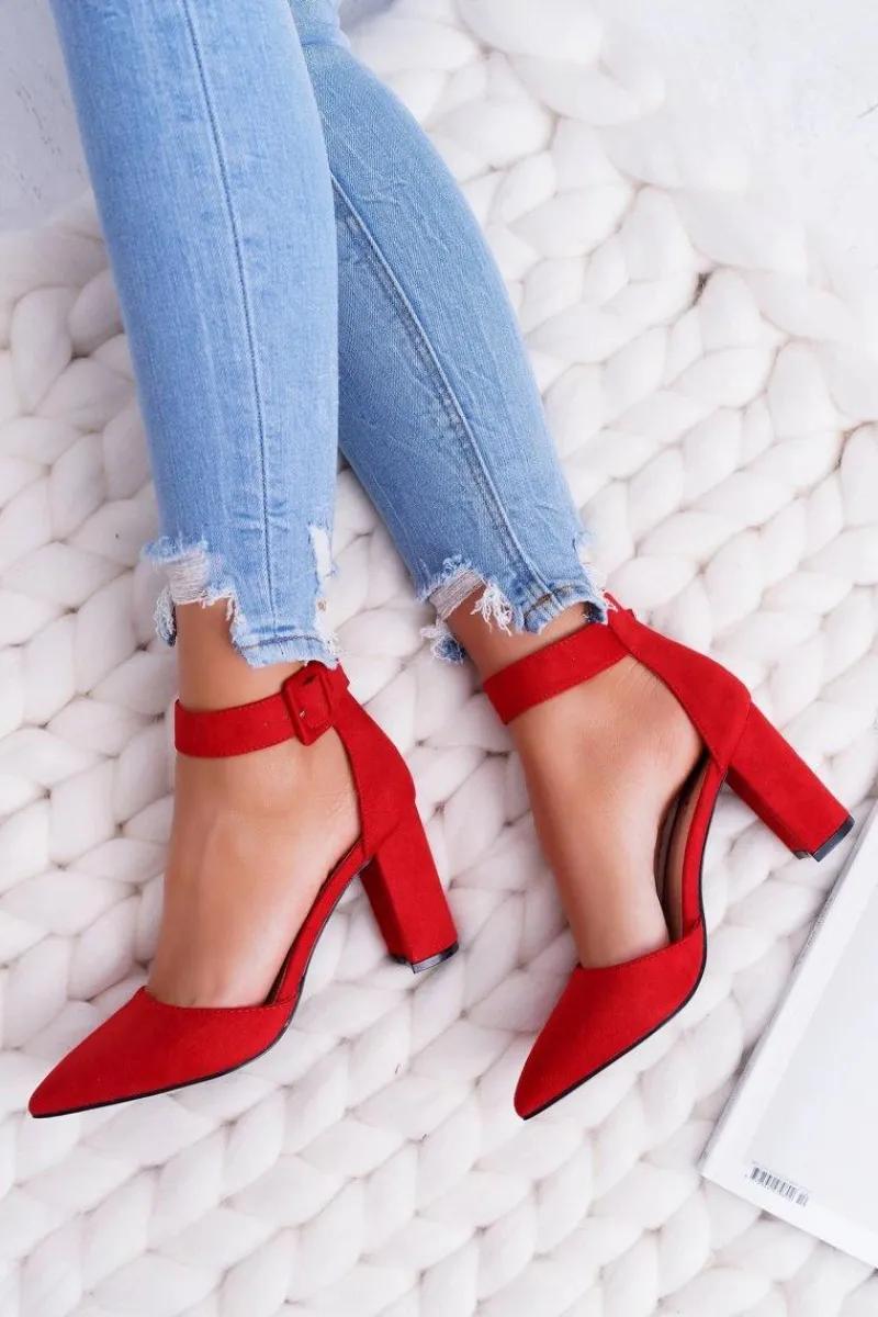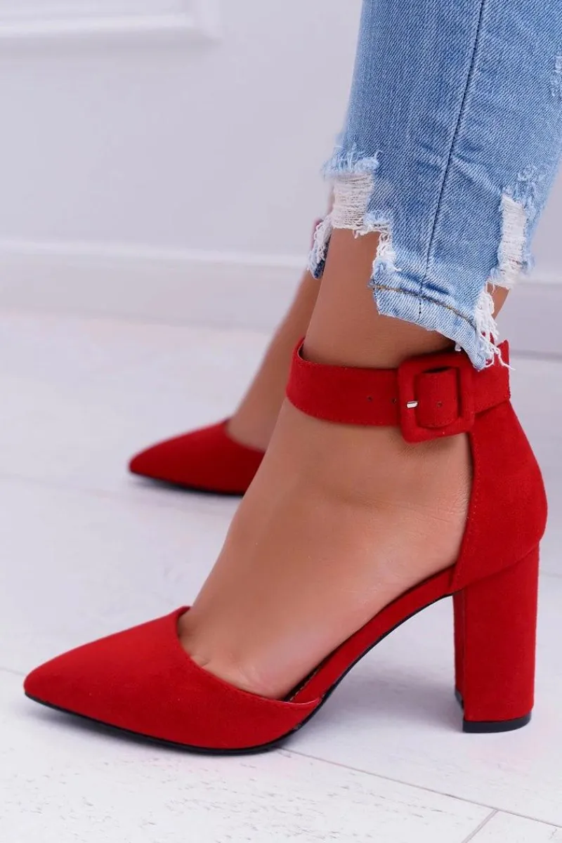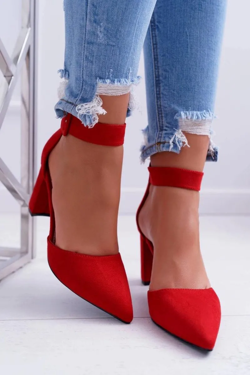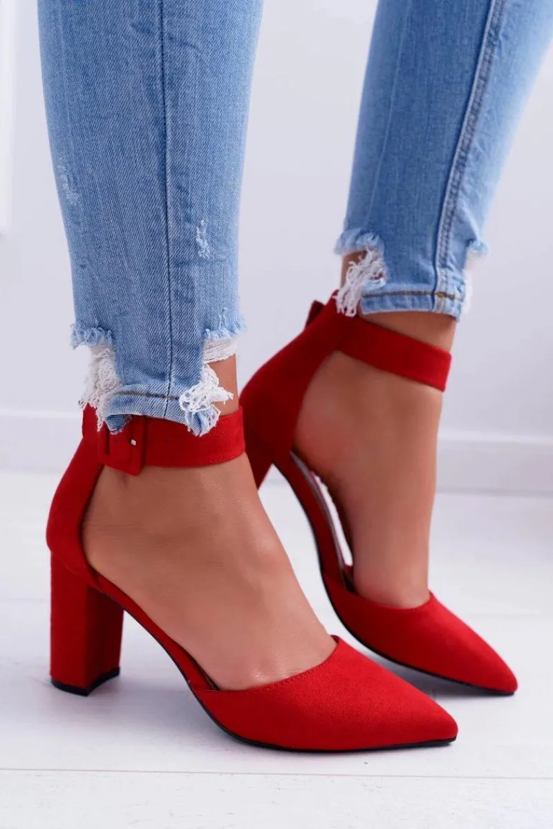 Clearance Czółenka Damskie Na Słupku W Szpic Czerwone Domine Damskie Czółenka Zamszowe|Czółenka Na Słupku
