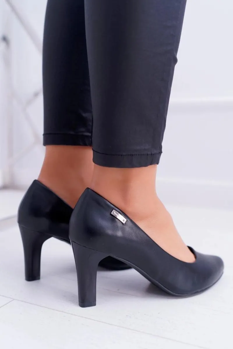Eleganckie czółenka damskie na słupku to idealne połączenie stylu i wygody. Wykonane z wysokiej jakości skóry ekologicznej, zapewniają trwałość oraz elegancki wygląd. Stabilny obcas dodaje kilku centymetrów wzrostu, jednocześnie gwarantując komfort noszenia przez cały dzień. Klasyczny design sprawia, że te czółenka doskonale sprawdzą się zarówno w biurze, jak i na wieczorne wyjścia, dodając każdej stylizacji wyrafinowanego charakteru.Przy wyborze rozmiaru prosimy sugerować się tabelą rozmiarów.