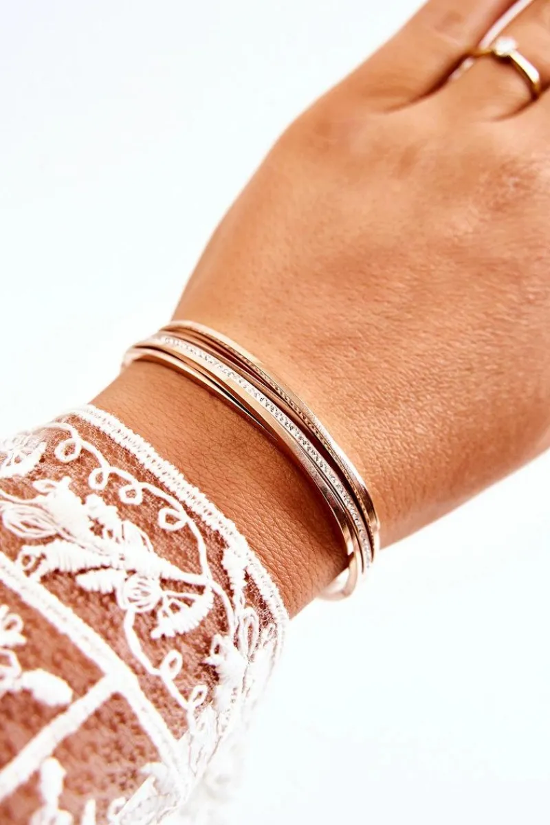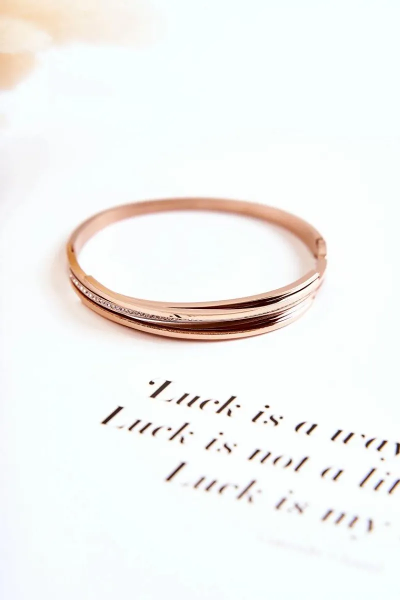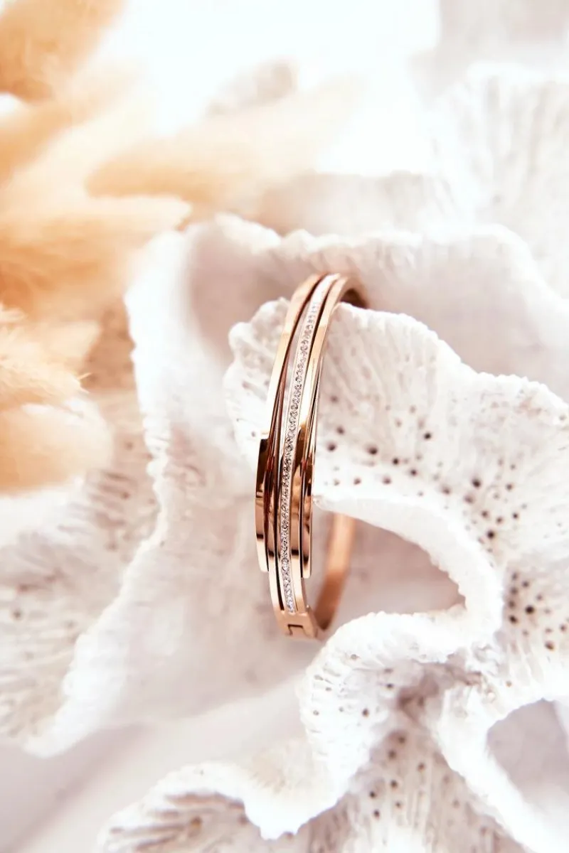 Clearance Damska Bransoleta Stalowa Z Cyrkoniami Różowe Złoto Myrens Bransoletki