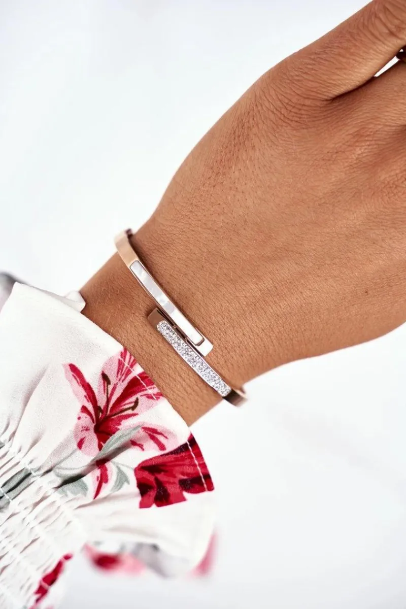 Clearance Damska Bransoleta Stalowa Z Cyrkoniami Różowe Złoto Sekvana Bransoletki