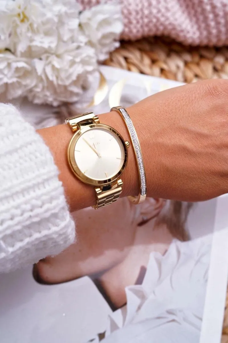 Clearance Damska Bransoleta Stalowa Z Cyrkoniami Złota Debi Bransoletki