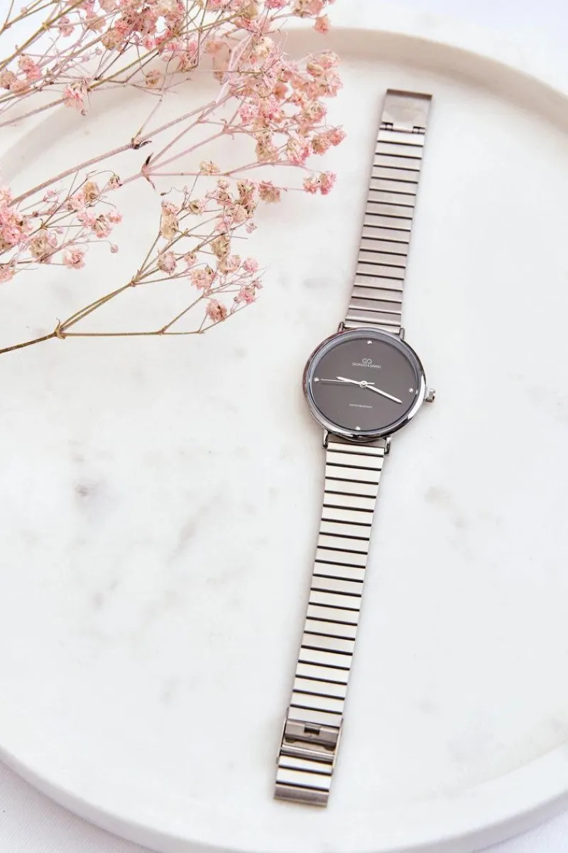 Damski zegarek świetnie sprawdzi się jako dodatek do codziennych stylizacji. Ten model jest dodatkowo wodoodporny. Zegarek posiada gładką tarczę z czterema cyrkoniami. Zapinany na zatrzask. Dzięki regulowanej bransolecie odpowiednio dopasujesz go do tęgości nadgarstka. Ten model powinien być Twój!