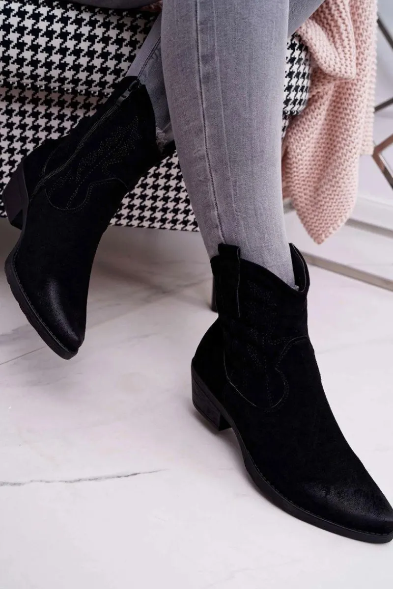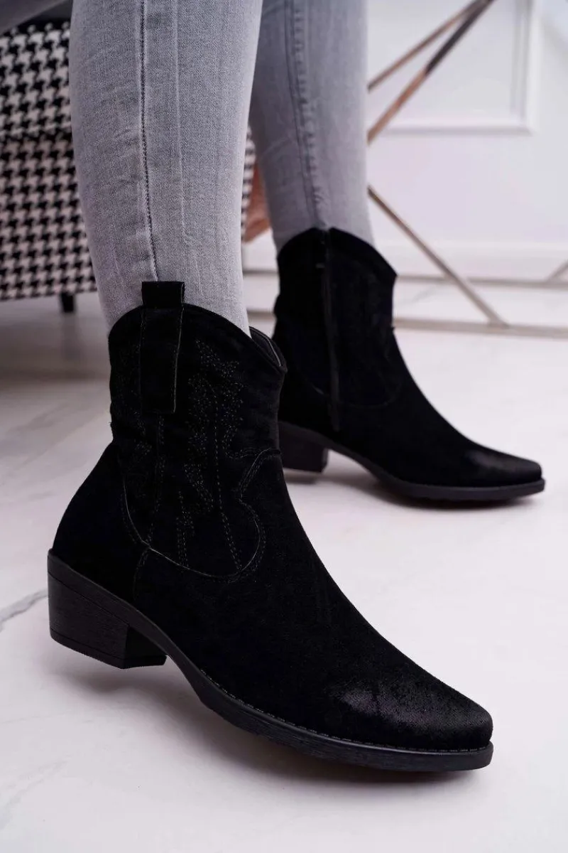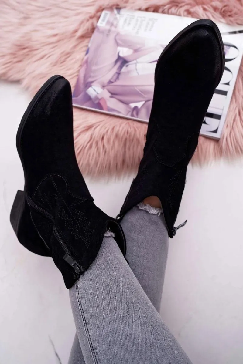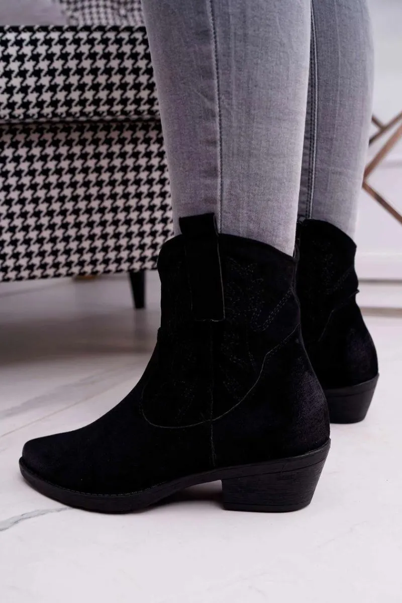 Clearance Damskie Botki Kowbojki Zamszowe Czarne Ferders Damskie Botki Zimowe Damskie|Brązowe I Beżowe Botki