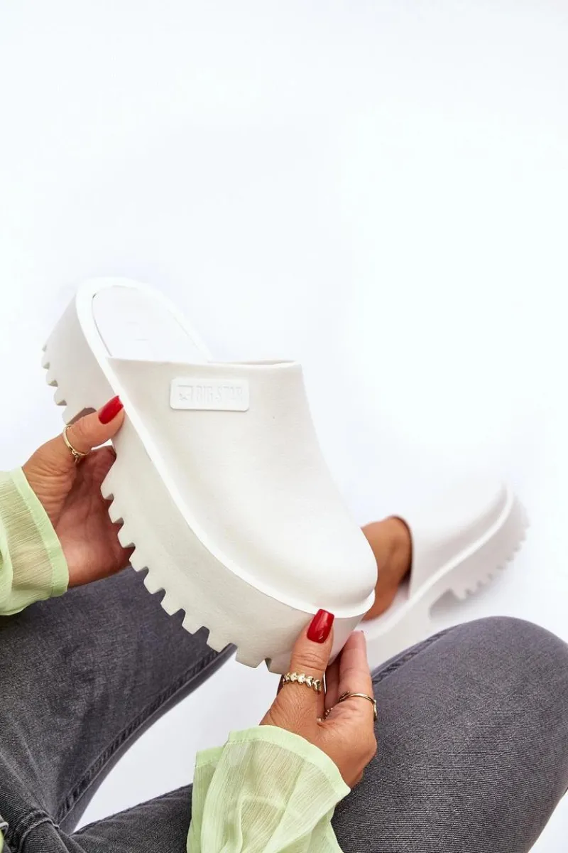 Modne klapki damskie od marki Big Star. Wykonane są z lekkiego materiału, co gwarantuje komfort podczas chodzenia, nawet przez dłuższy czas. Ich wszechstronność sprawia, że są idealnym wyborem nie tylko na plażę czy basen, ale także do noszenia w pracy. Przy wyborze rozmiaru prosimy sugerować się tabelą rozmiarów.