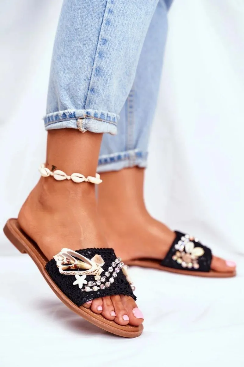 Clearance Damskie Klapki Z Muszelkami Czarne Spain Damskie Klapki Damskie Klasyczne