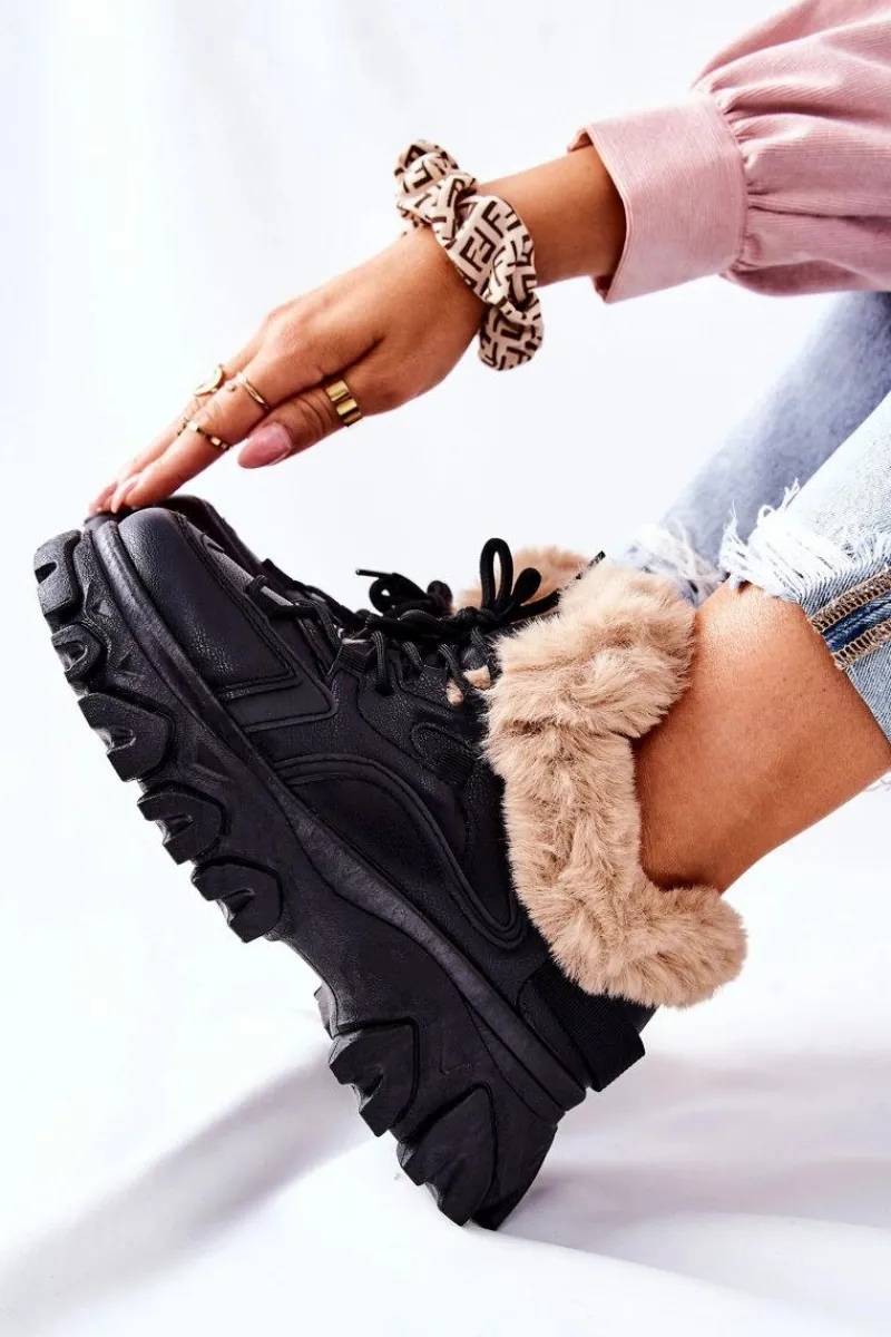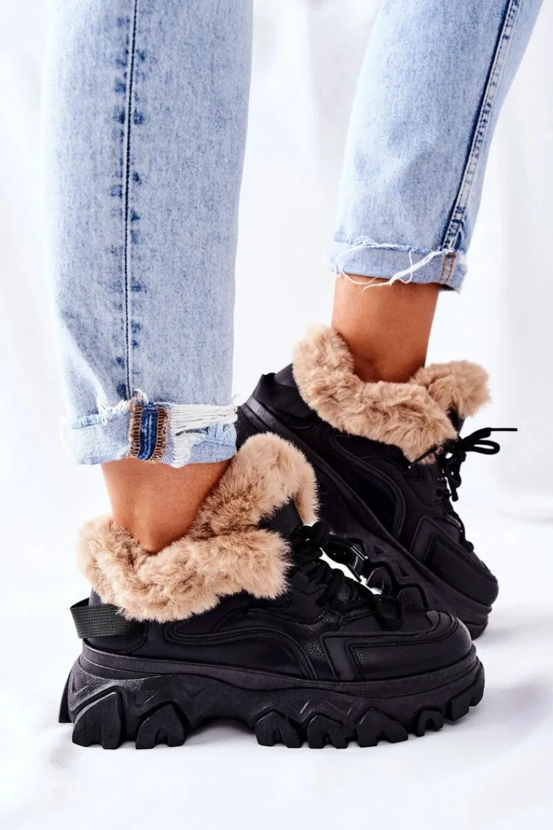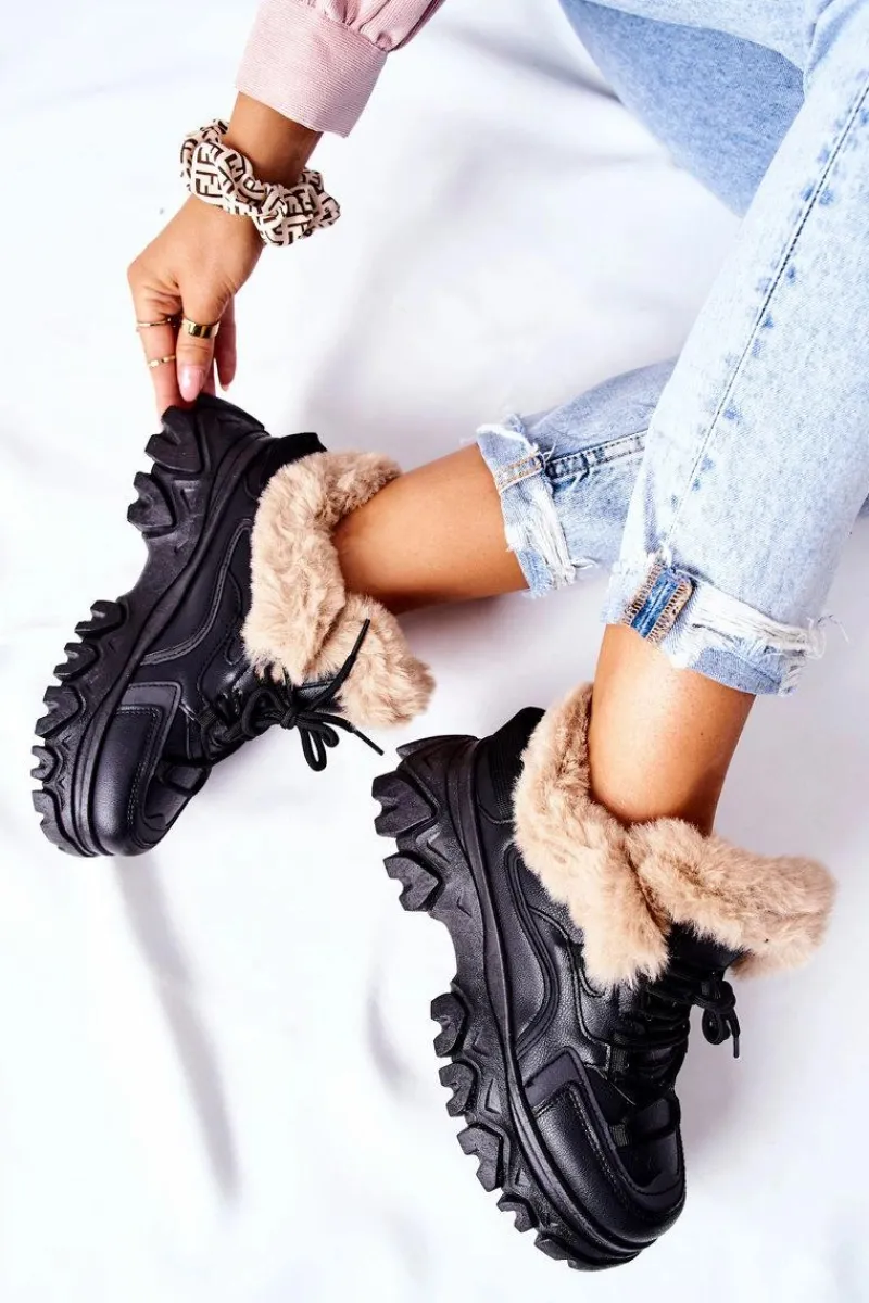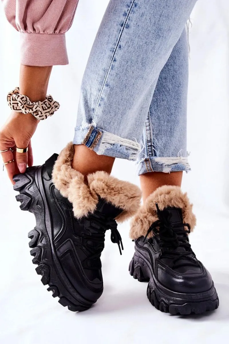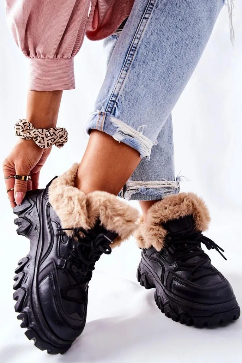 Trapery wykonane są ze skóry ekologicznej. Wewnątrz znajduje się ciepłe i miłe w dotyku futerko. Buty idealnie sprawdzą się w zimowe dni! Przy wyborze rozmiaru prosimy sugerować się tabelą rozmiarów.