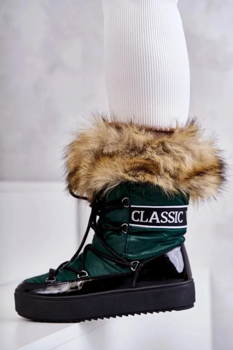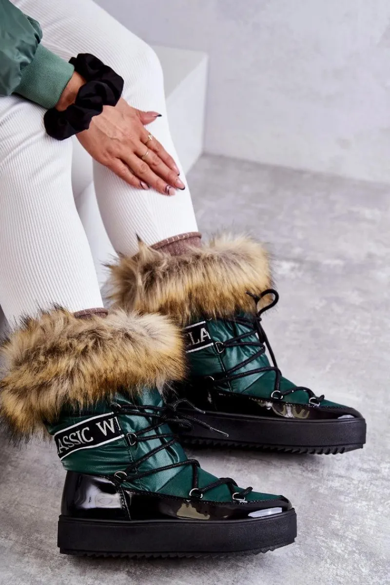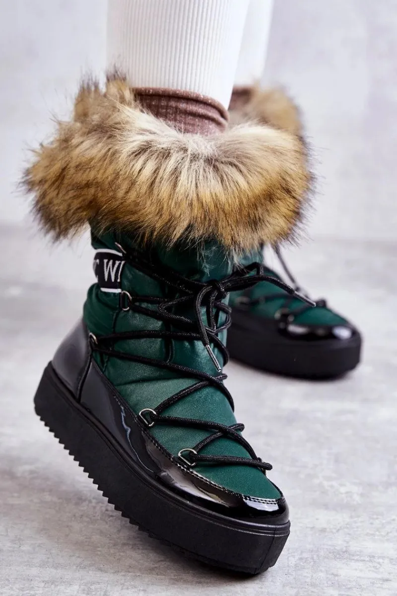 Modne śniegowce zostały wykonane z materiału odpornego na zimno i wiatr. Cholewka zakończona sztucznym futerkiem. Model klasycznie sznurowany. Śniegowce zostały osadzone na masywnej platformie. Posiadają w środku ocieplenie w postaci grubego futerka. Dekorowane tasiemką z nadrukiem. Niezwykle ciepłe, a zarazem stylowe. Powinnaś je mieć! Przy wyborze rozmiaru prosimy sugerować się tabelą rozmiarów.