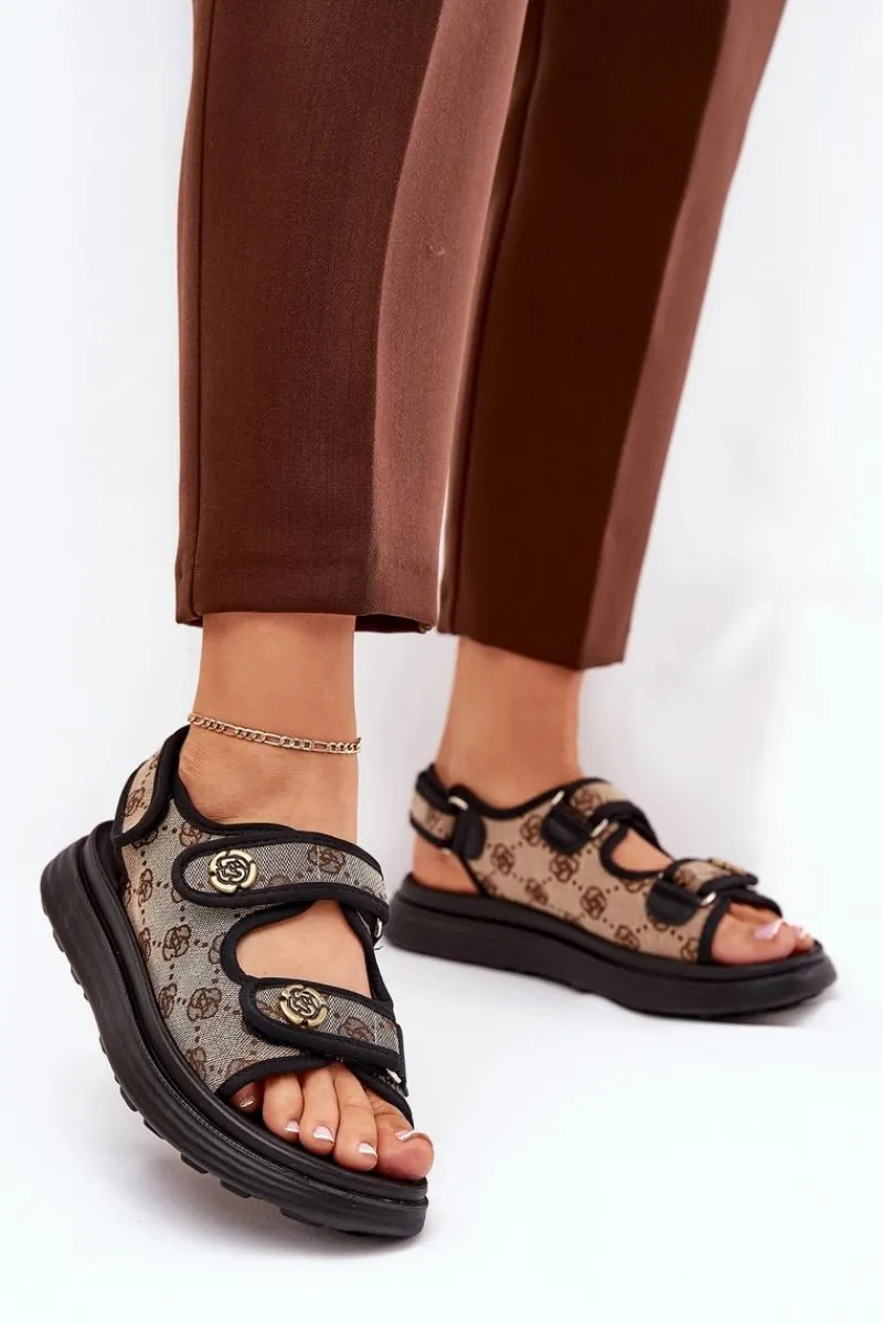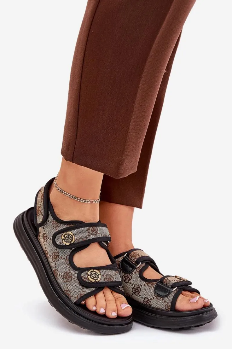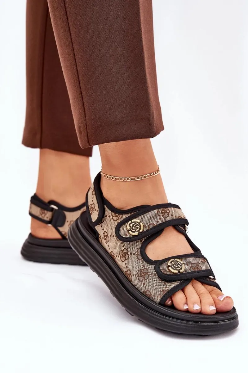 Stylowe sandały damskie z materiału tekstylnego, wyróżniające się wzorzystą cholewką, która nadaje im unikalnego charakteru. Zapinane na trzy rzepy, umożliwiają doskonałe dopasowanie do stopy. Ozdobne detale dodają elegancji i modowego akcentu. Osadzone na platformie, zapewniają komfort i stabilność przez cały dzień. Dzięki miękkiej wkładce sandały gwarantują wygodę, czyniąc je idealnym wyborem na ciepłe dni i letnie stylizacje. Przy wyborze rozmiaru prosimy sugerować się tabelą rozmiarów.