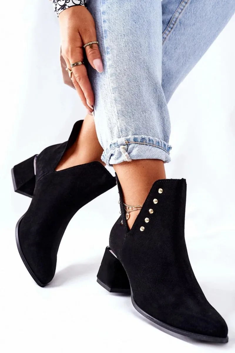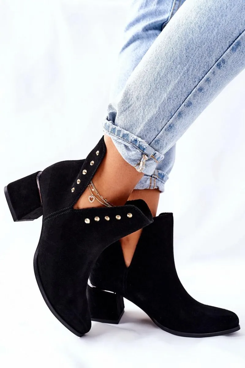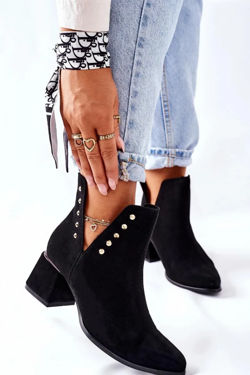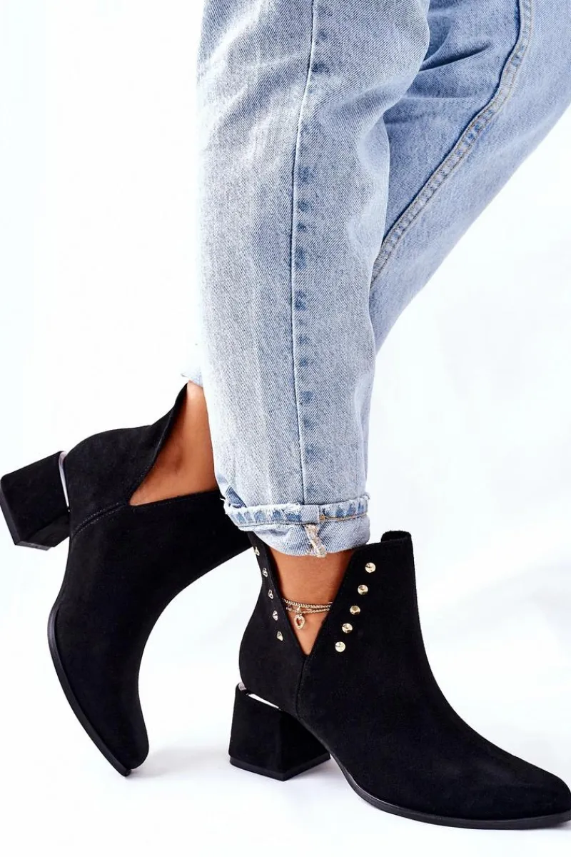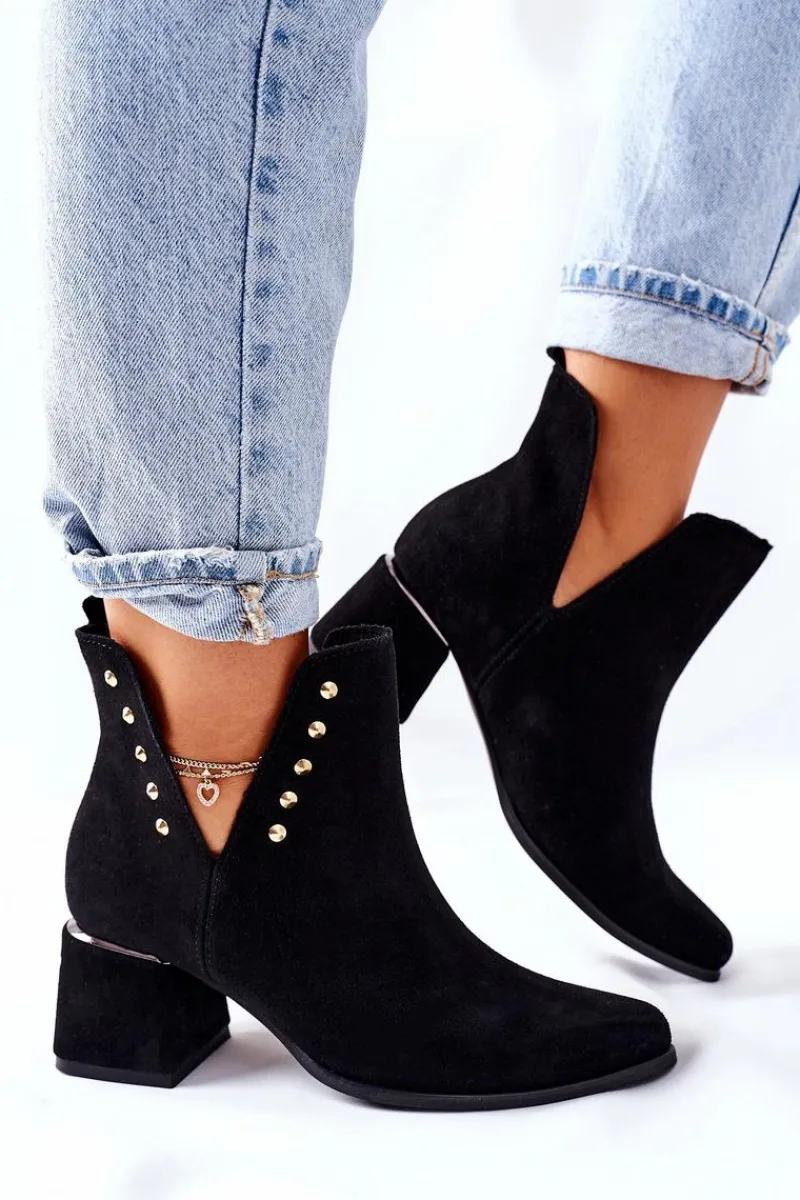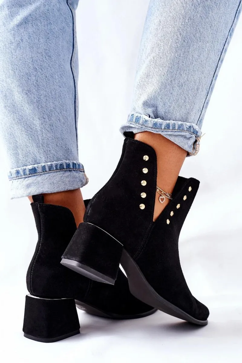 Botki to nieodłączny element jesienno-zimowych stylizacji. Firma Lewski ma propozycje na każdy sezon. Prezentowany model dzięki delikatnym wycięciom, idealnie sprawdzi się podczas jesiennych stylizacji. Zdobienia na cholewce w postaci złotych dżetów oraz srebrnej wstawki na obcasie, podkreśla ich elegancki styl. Botki w całości zostały wykonane z naturalnego zamszu. Przy wyborze rozmiaru prosimy sugerować się tabelą rozmiarów.