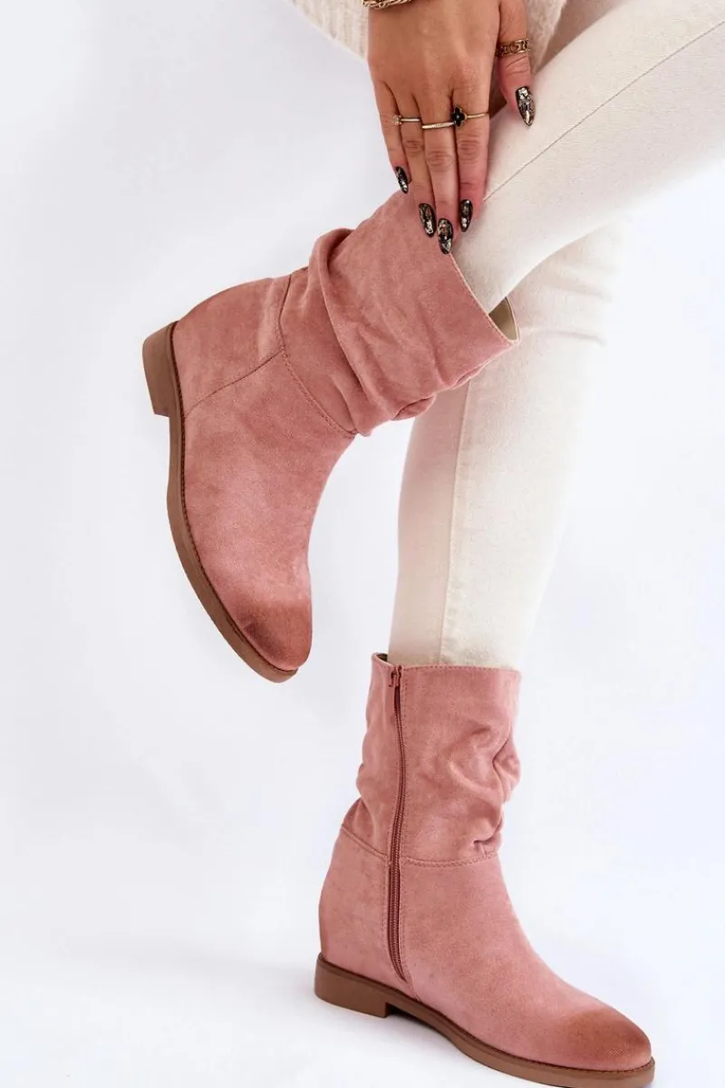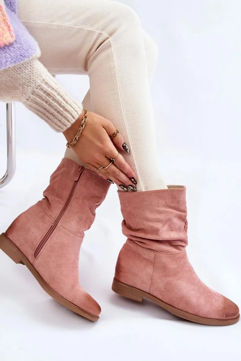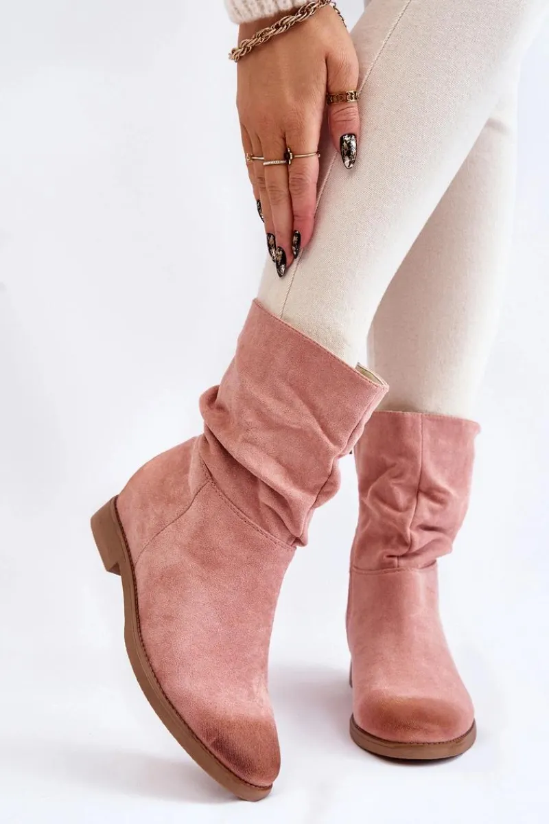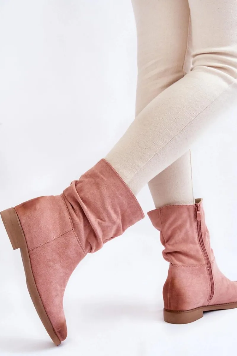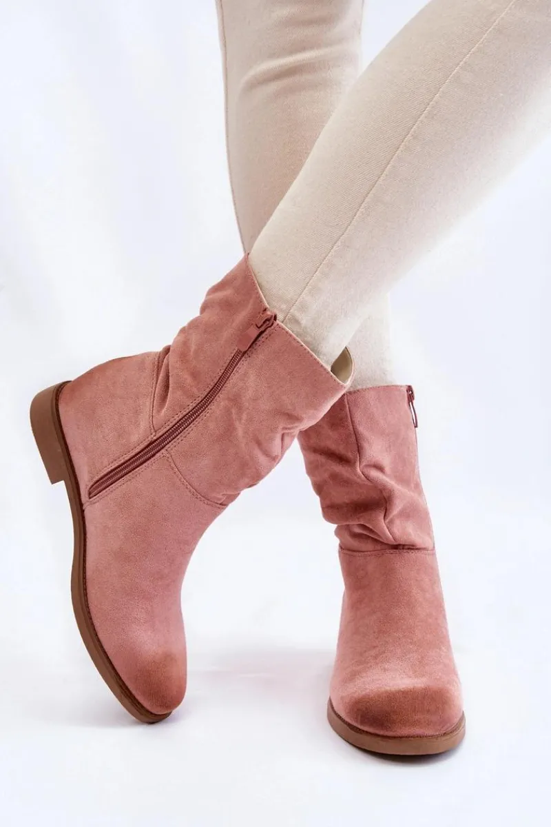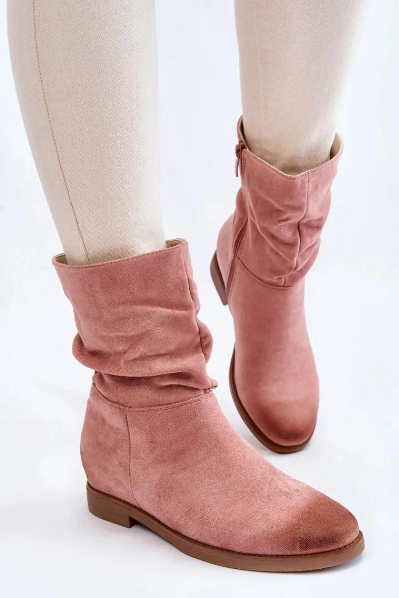 Botki damskie posiadają wysoką, lekko marszczoną cholewkę za kostkę. Zamykane na suwak. Wykonane z przyjemnego w dotyku eko zamszu. Wkładka została wykonana z tkaniny. Zapiętek usztywniany. Na nosku oraz z tyłu cholewki znajdują się modne przetarcia. Idealne na sezon wiosenno-jesienny. Model ten będzie świetnie prezentował się z jeansami czy zwiewną spódnicą. Przy wyborze rozmiaru prosimy sugerować się tabelą rozmiarów.