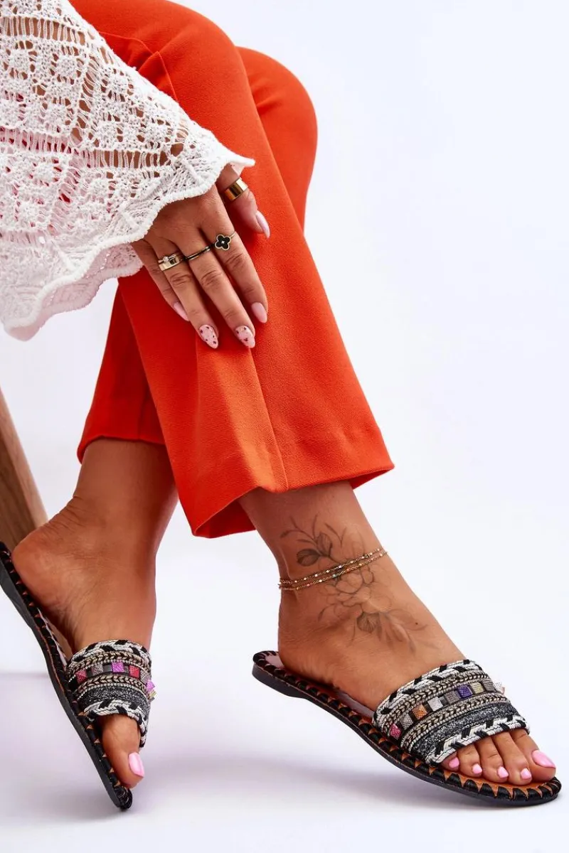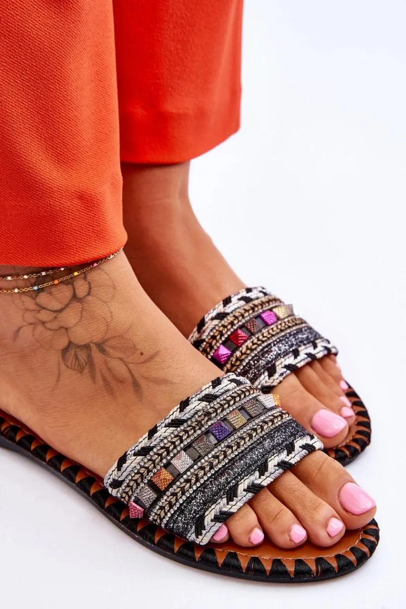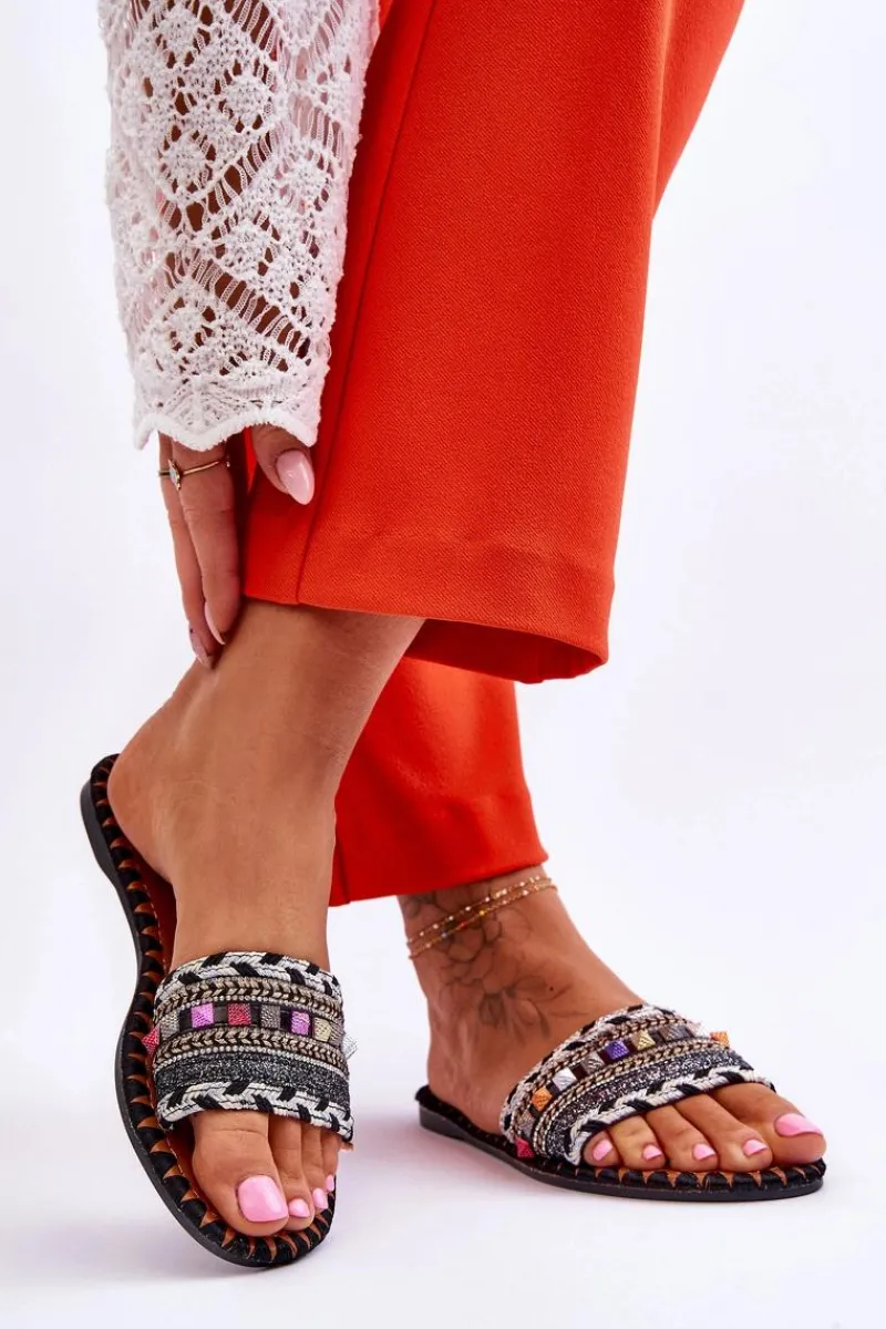 Clearance Damskie Zdobione Klapki Czarne Bellisa Damskie Klapki Damskie Klasyczne