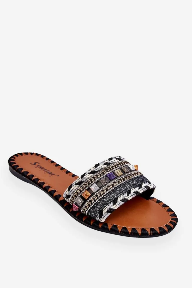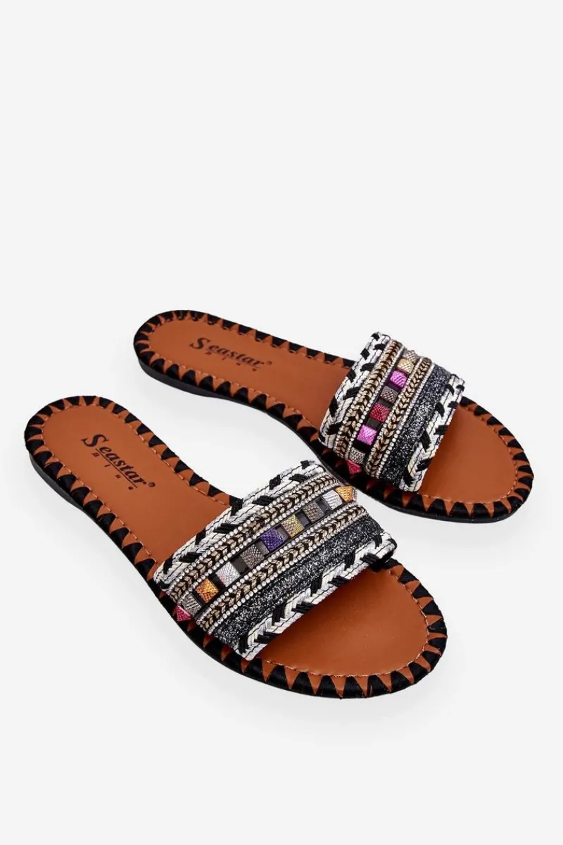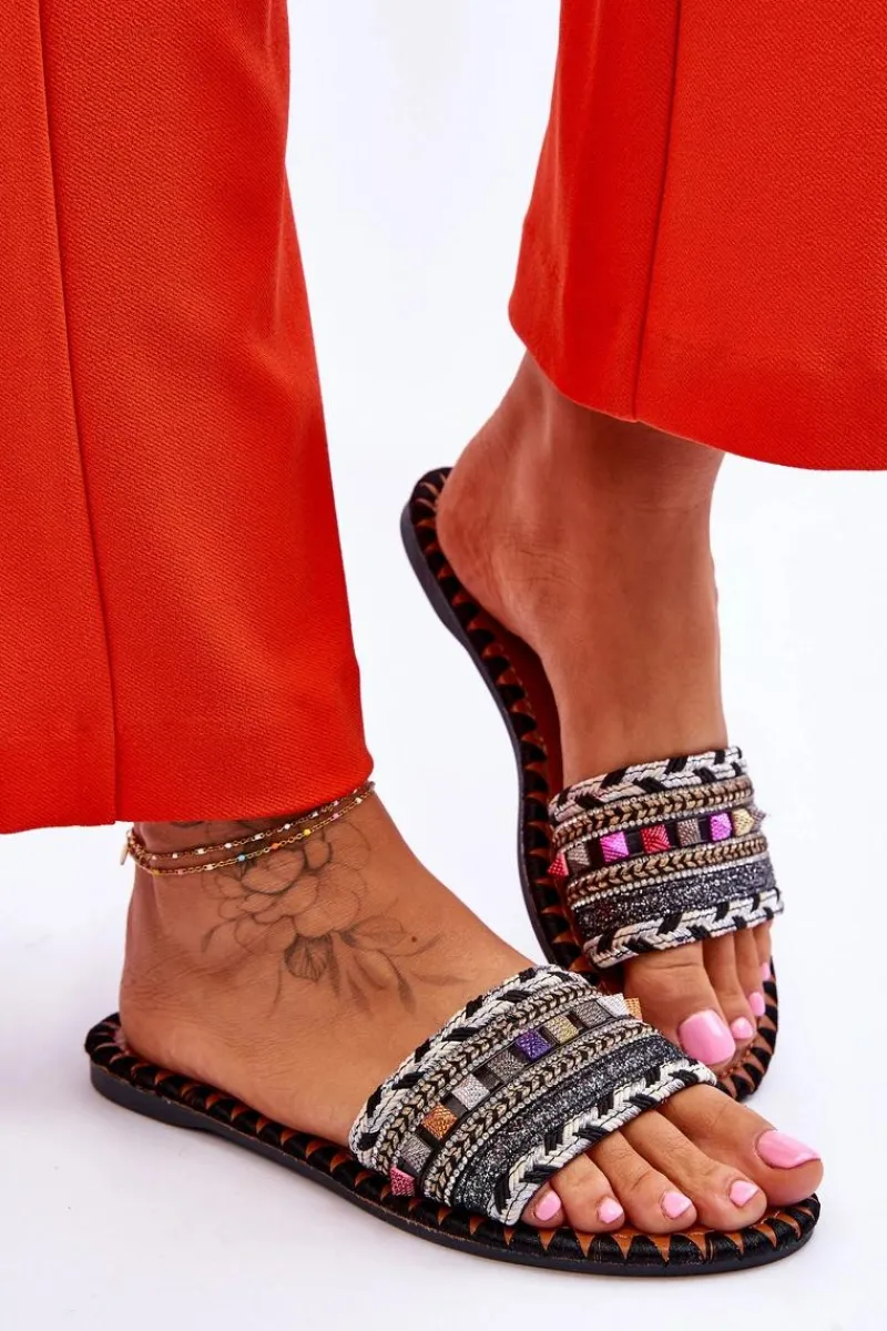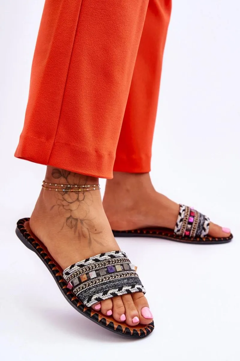 Clearance Damskie Zdobione Klapki Czarne Bellisa Damskie Klapki Damskie Klasyczne