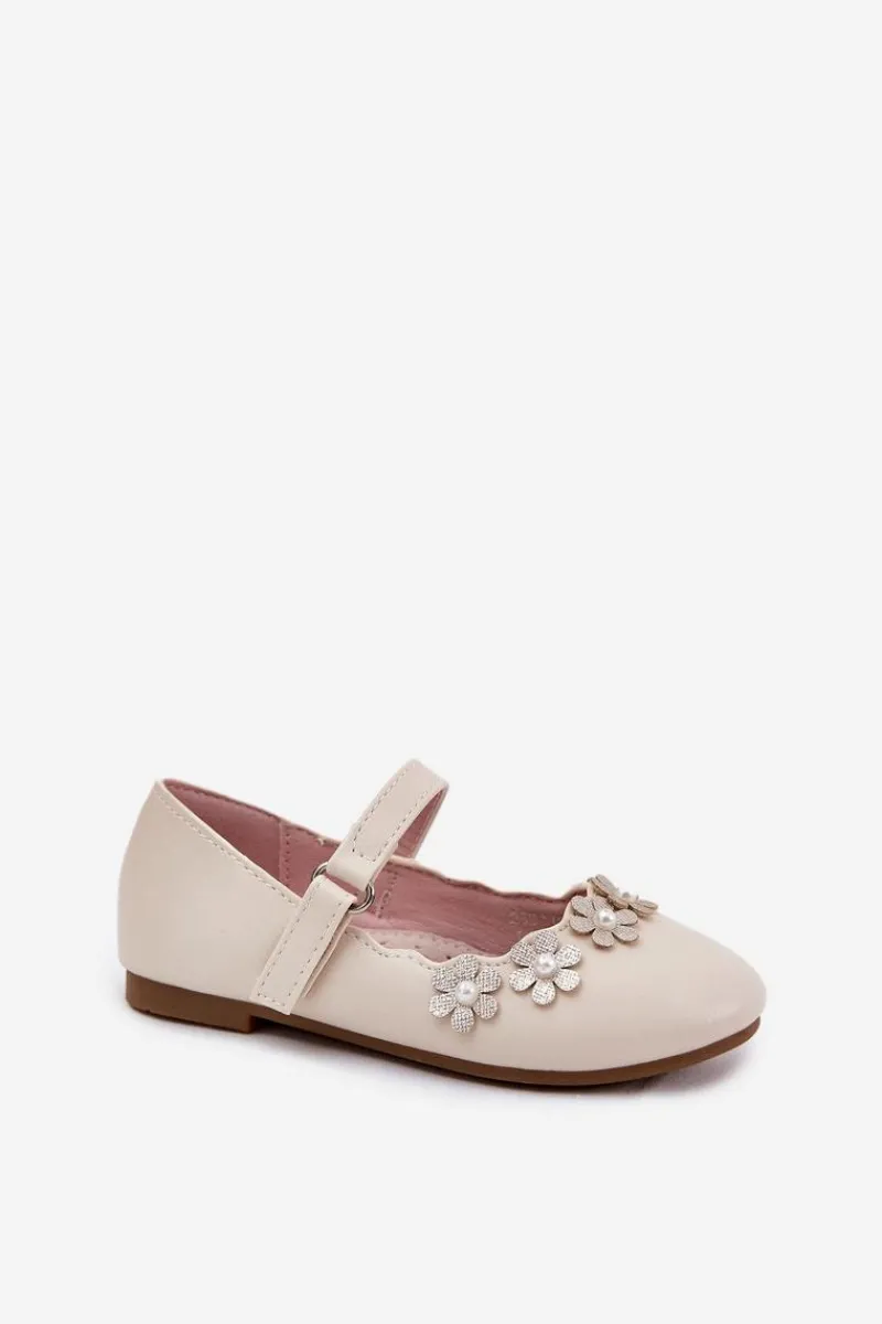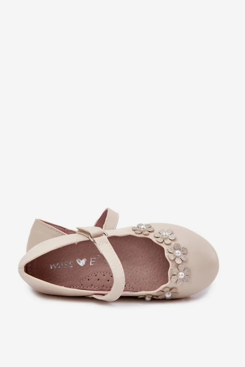 Clearance Dziecięce Balerinki Z Kwiatuszkami Beżowe Landgia Dzieci Balerinki Dziecięce