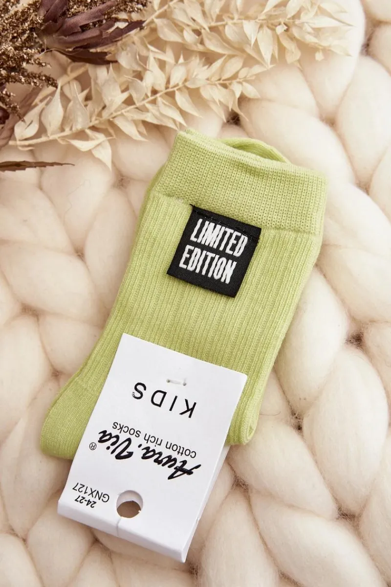 Clearance Dziecięce Gładkie Skarpetki Z Naszywką Jasnozielone Skarpetki|Skarpetki