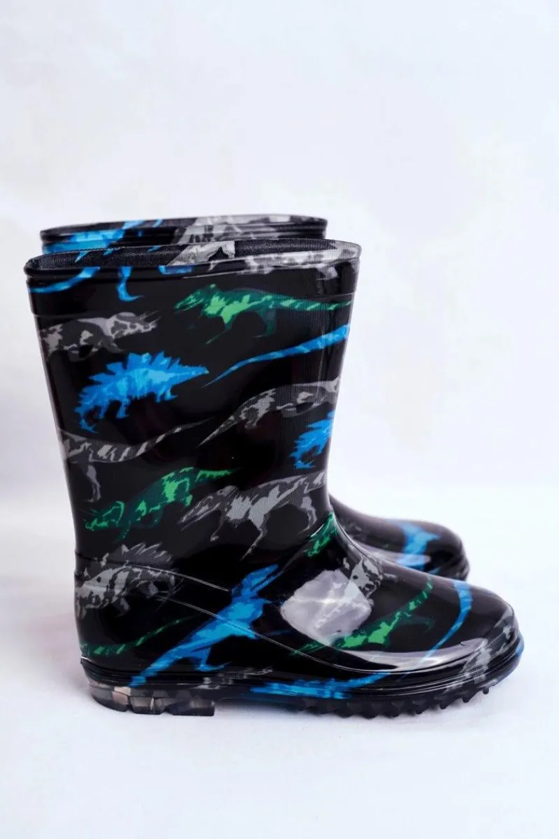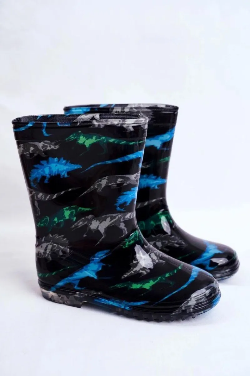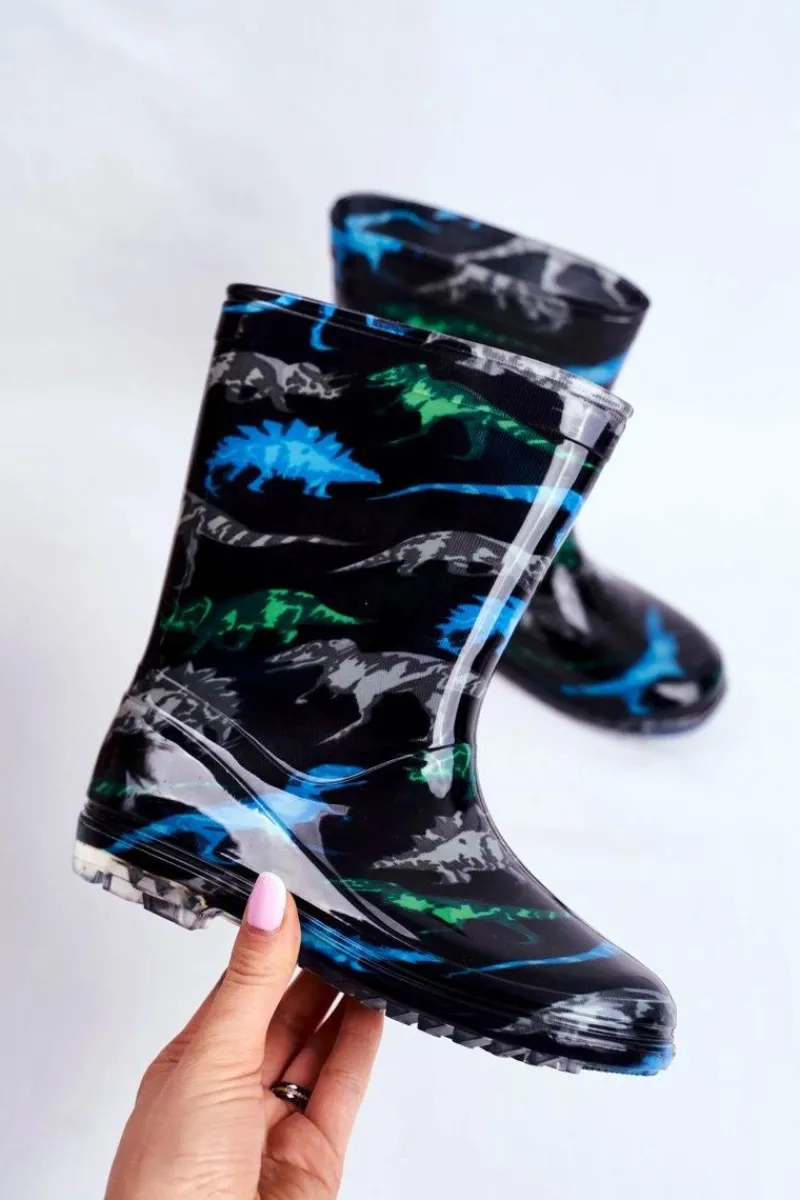 Clearance Dziecięce Gumowe Kalosze Czarne Dinozaur Dzieci Chłopięce|Dziewczęce