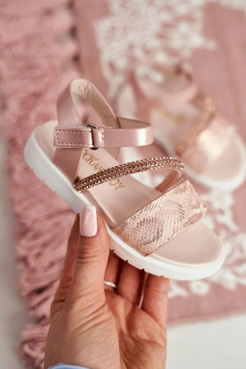 Jeśli szukasz wygodnego obuwia dla swojej pociechy na ciepłe letnie dni to te buty są właśnie dla Ciebie! Niesamowite sandałki zdobione wężowym motywem i cyrkoniami na paskach. Miękka wkładka zadba o komfort podczas chodzenia a zakładanie ułatwi zapinanie na rzep. Przy wyborze rozmiaru prosimy sugerować się tabelą rozmiarów.