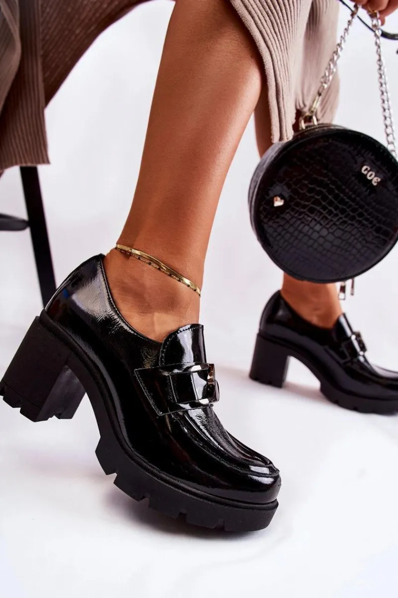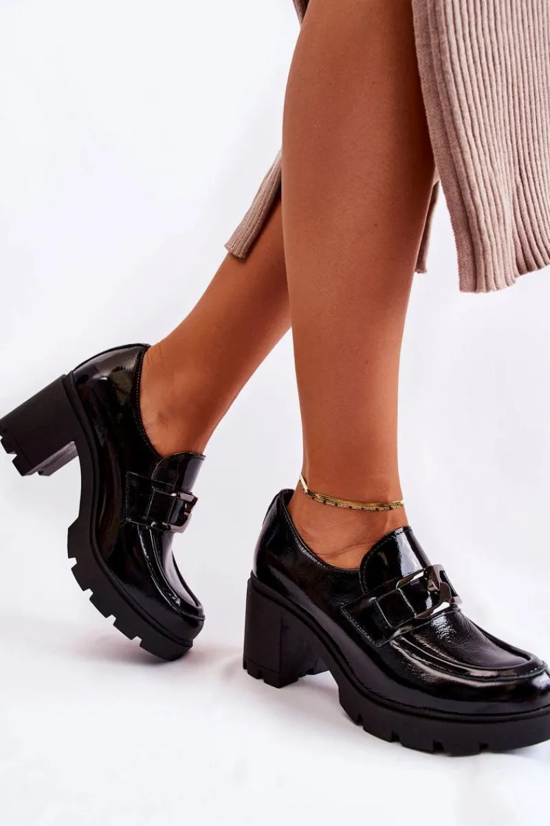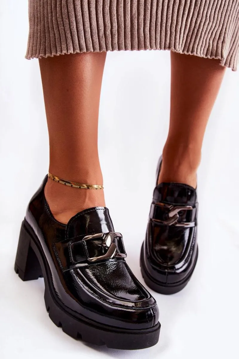 Cudowne półbuty na obcasie z cholewką wykonaną ze skóry naturalnej. Wnętrze zostało pokryte skórą naturalną oraz materiałem tekstylnym, dzięki temu są bardzo komfortowe w użytkowaniu. Wkładka ze skóry naturalnej, a podeszwa wykonana z gumowego tworzywa. Stylowy obcas w postaci szerokiego słupka zapewni stabilizację na każdym kroku. Lustrzana ozdoba na przodzie. Zapiętek jest usztywniany. Dodatkowo pod językiem znajduje się gumka ściągająca, która sprawi, że but będzie idealnie dopasowany do stopy. Przy wyborze rozmiaru prosimy sugerować się tabelą rozmiarów.