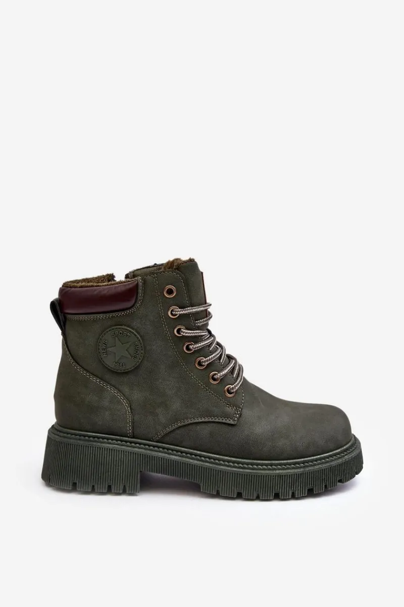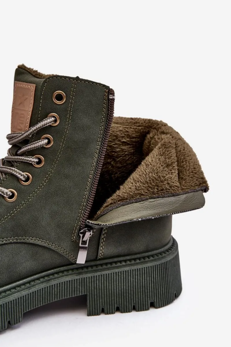 Botki w stylu traperów idealnie sprawdzą się na chłodniejsze dni! Zostały wykonane z eko skóry. Posiadają klasyczne sznurowanie oraz suwak z boku cholewki. Model z dodatkowo usztywnianym zapiętkiem. Ocieplone wewnątrz miłym w dotyku kocem obuwniczym. Trapery osadzono na delikatnej platformie oraz płaskim obcasie. Przy wyborze rozmiaru prosimy sugerować się tabelą rozmiarów.