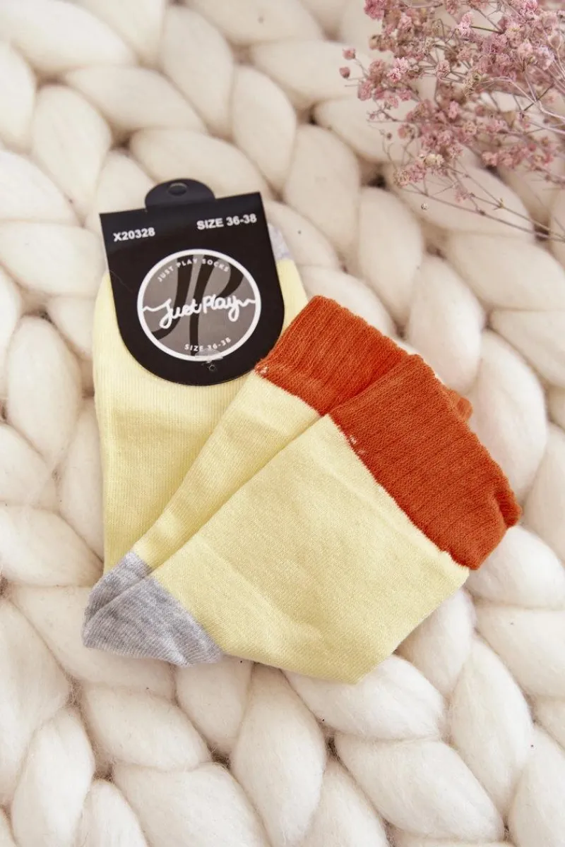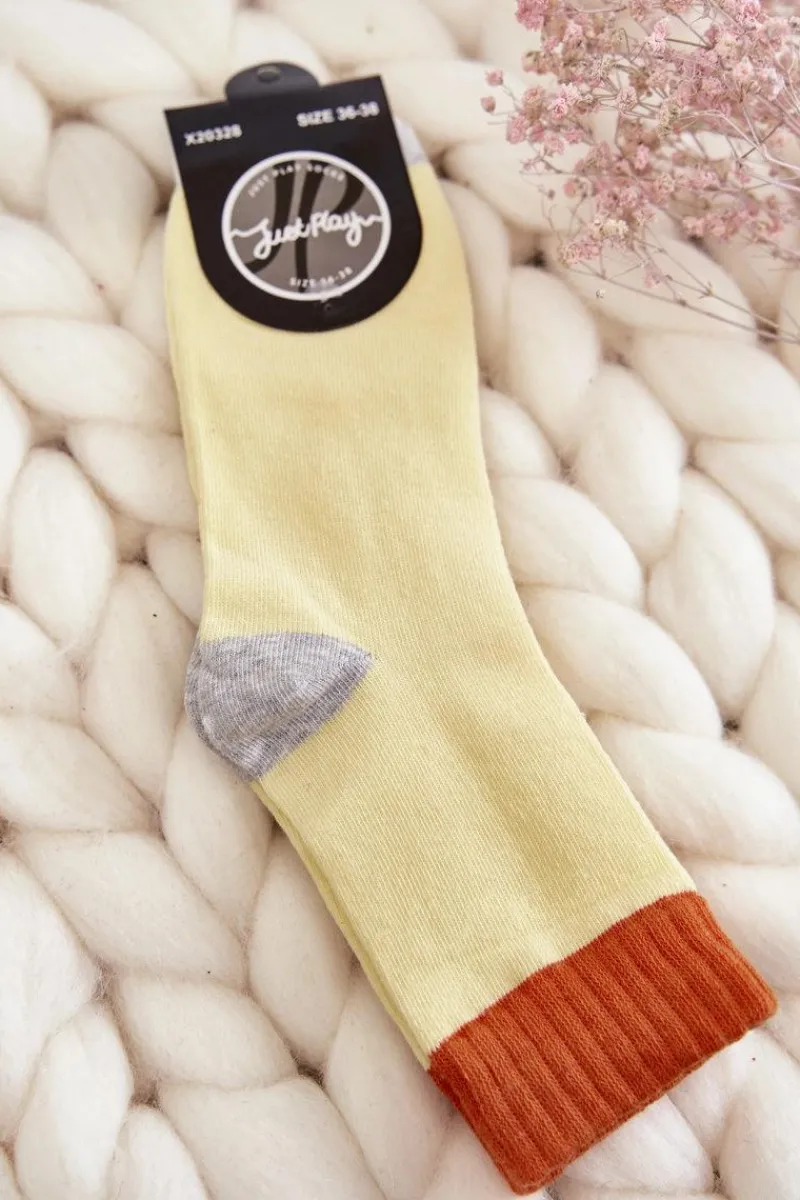 Clearance Just Play Damskie Bawełniane Gładkie Skarpety Żółte