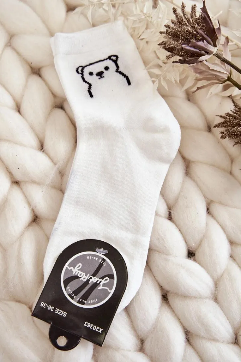 Klasyczne, damskie skarpetki zostały wykonane w 100% z bawełny. Gładki model za kostkę posiada niewielki motyw misia na górze skarpety. Ściągacz świetnie dopasuje się do tęgości nogi. Idealne do wielu rodzajów obuwia. Świetnie sprawdzą się w sezonie jesienno-wiosennym. Koniecznie sprawdź także pozostałe modele skarpetek!