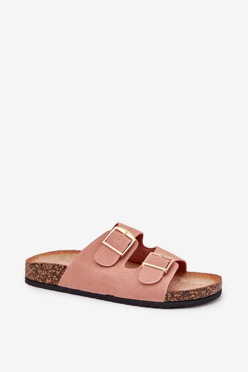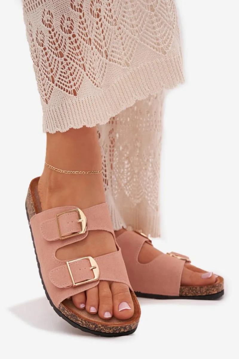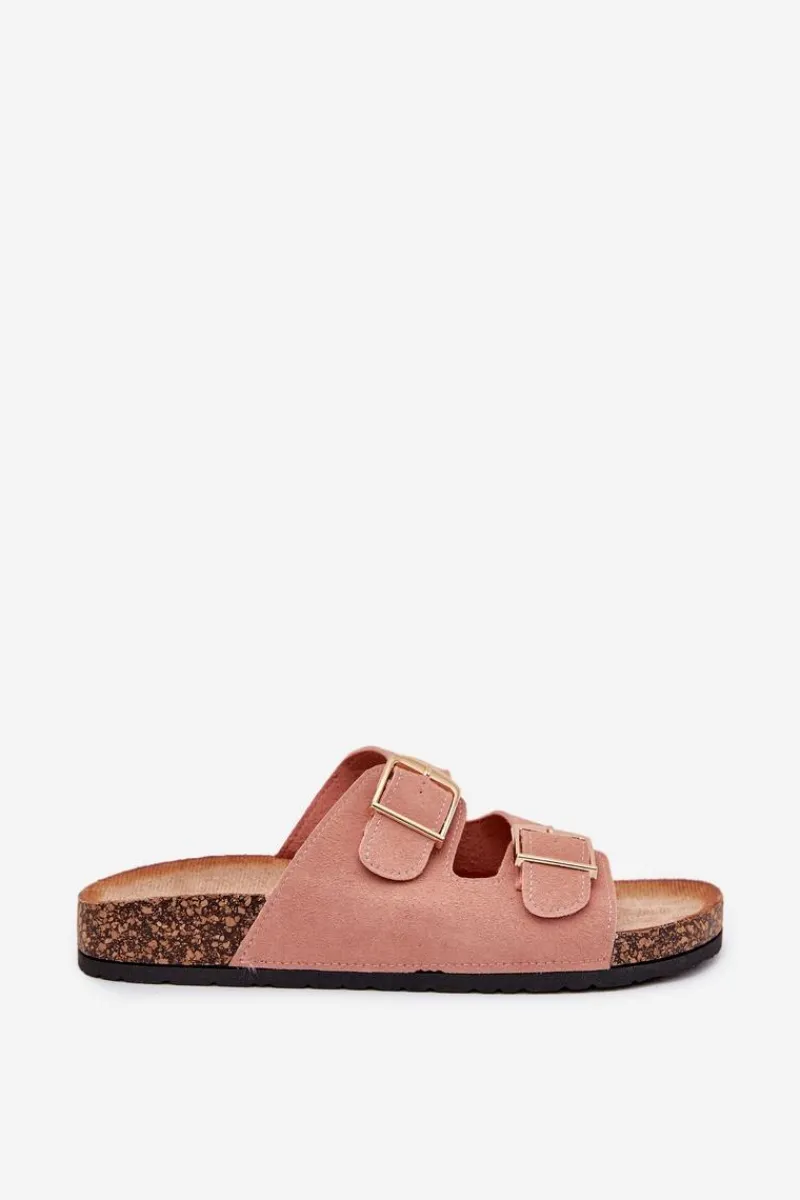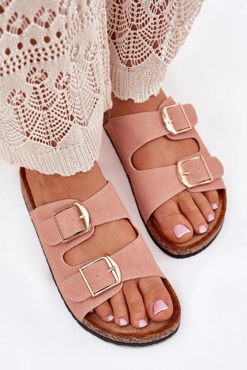 Stylowe klapki damskie na korkowej platformie, które łączą wygodę z modnym wyglądem. Z przodu znajdują się dwa paski z klamrami, które zapewniają idealne dopasowanie. Profilowana eko zamszowa wkładka gwarantuje komfort przez cały dzień. Te klapki będą doskonałym wyborem na letnie dni, świetnie komponując się z sukienkami, spódnicami i spodniami. Przy wyborze rozmiaru prosimy sugerować się tabelą rozmiarów.