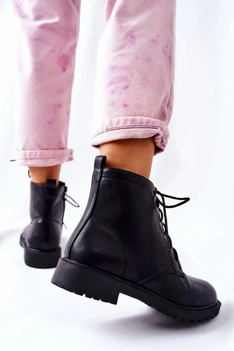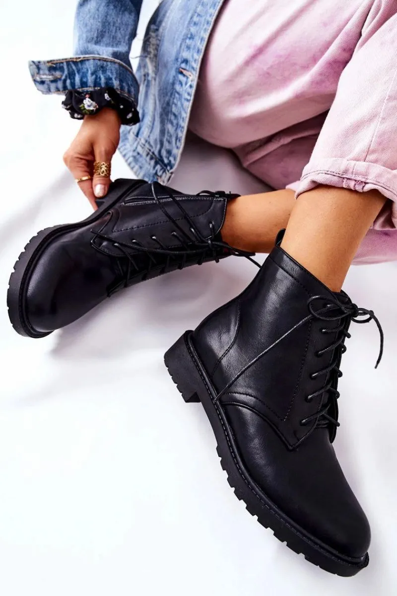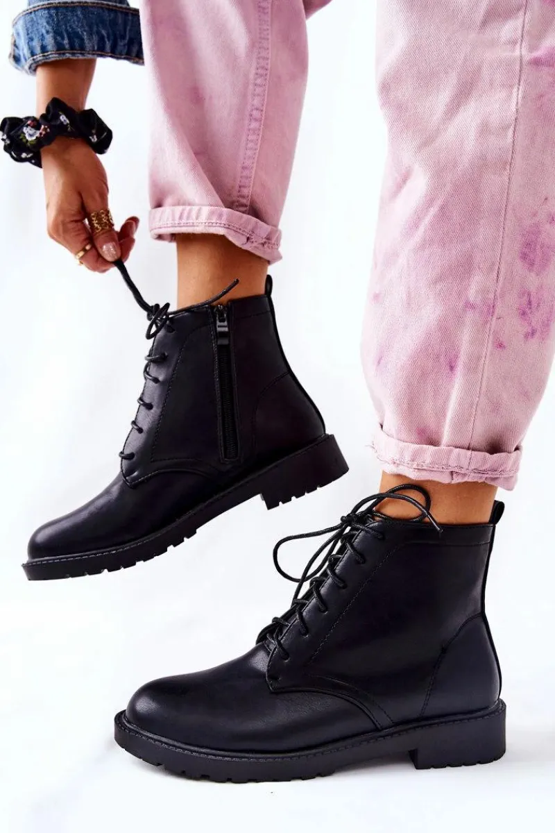 Klasyczne botki posiadają wiązanie oraz suwak ułatwiający zakładanie butów. Wykonane z eko skóry. Botki w środku posiadają na całości ocieplenie w postaci koca obuwniczego. Wiązanie w kolorze obuwia. Idealne na chłodne dni. Będą pasować do wielu stylizacji! Przy wyborze rozmiaru prosimy sugerować się tabelą rozmiarów.