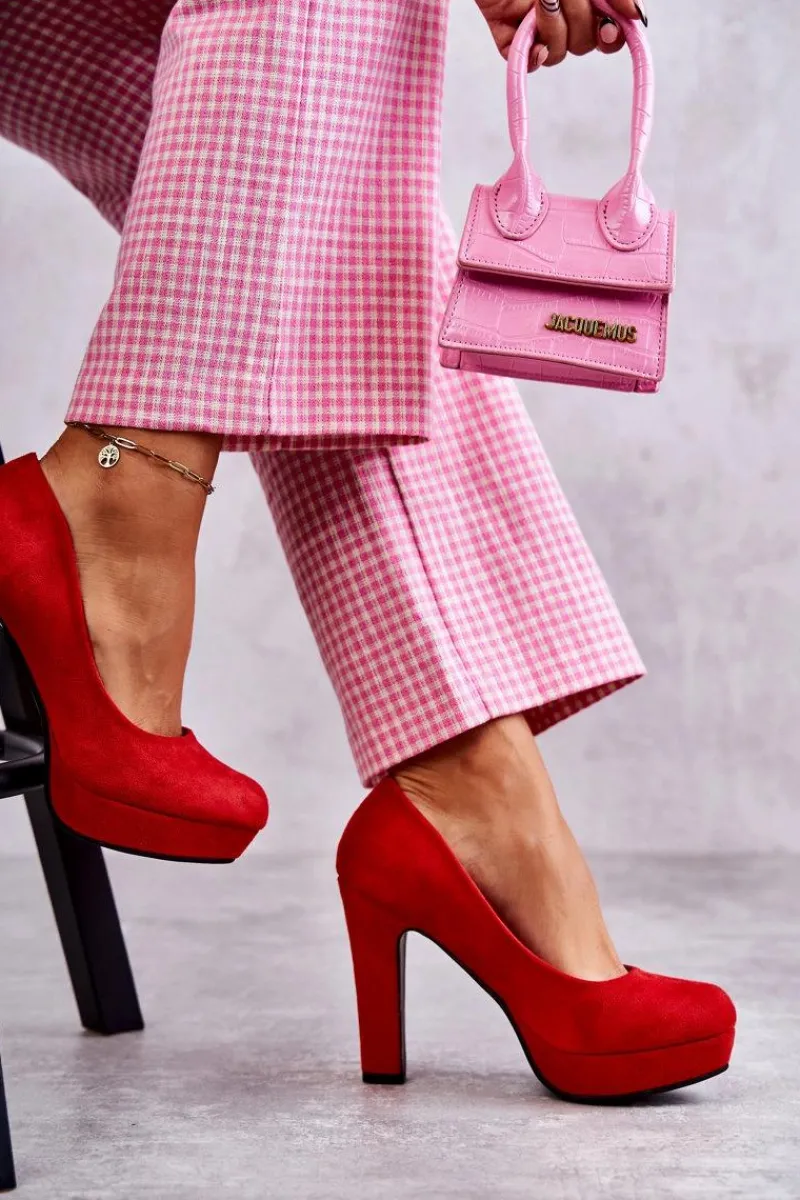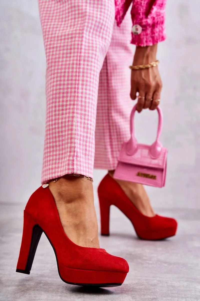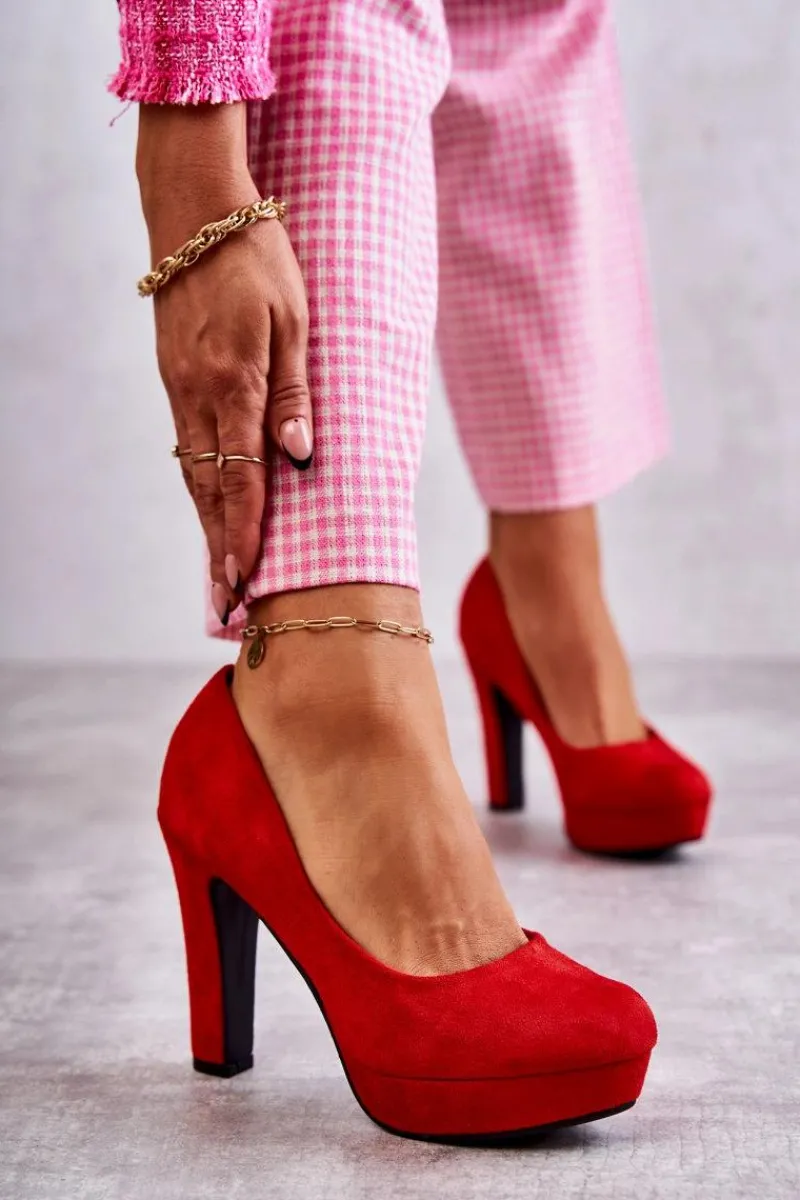 Klasyczne czółenka zostały wykonane z przyjemnego w dotyku eko zamszu. Model osadzony na średniej wysokości słupku oraz platformie, który optycznie wydłuży i wysmukli nogi. Wkładka wykonana z eko skóry. Nosek delikatnie zaokrąglony. Dodatkowo zapiętek jest usztywniany. Model klasyczny, który będzie pasować do wielu stylizacji! Przy wyborze rozmiaru prosimy kierować się tabelą rozmiarów.