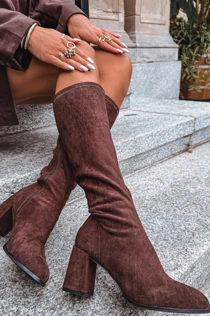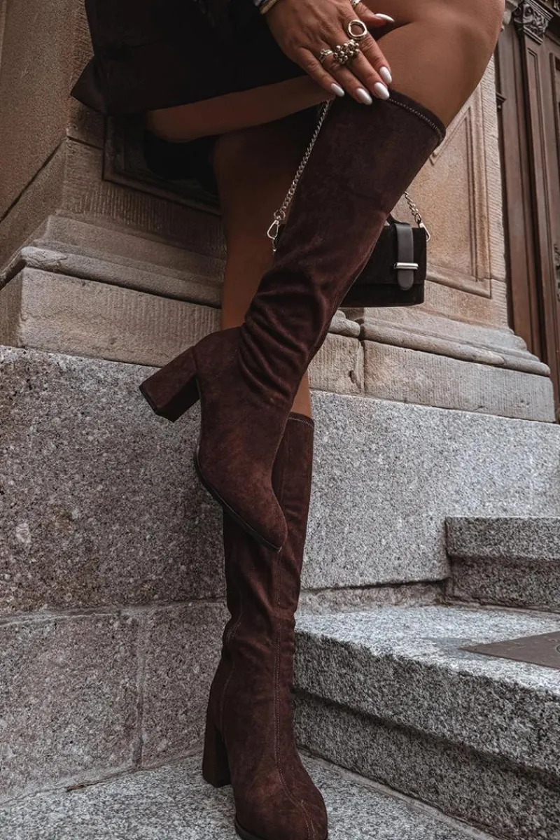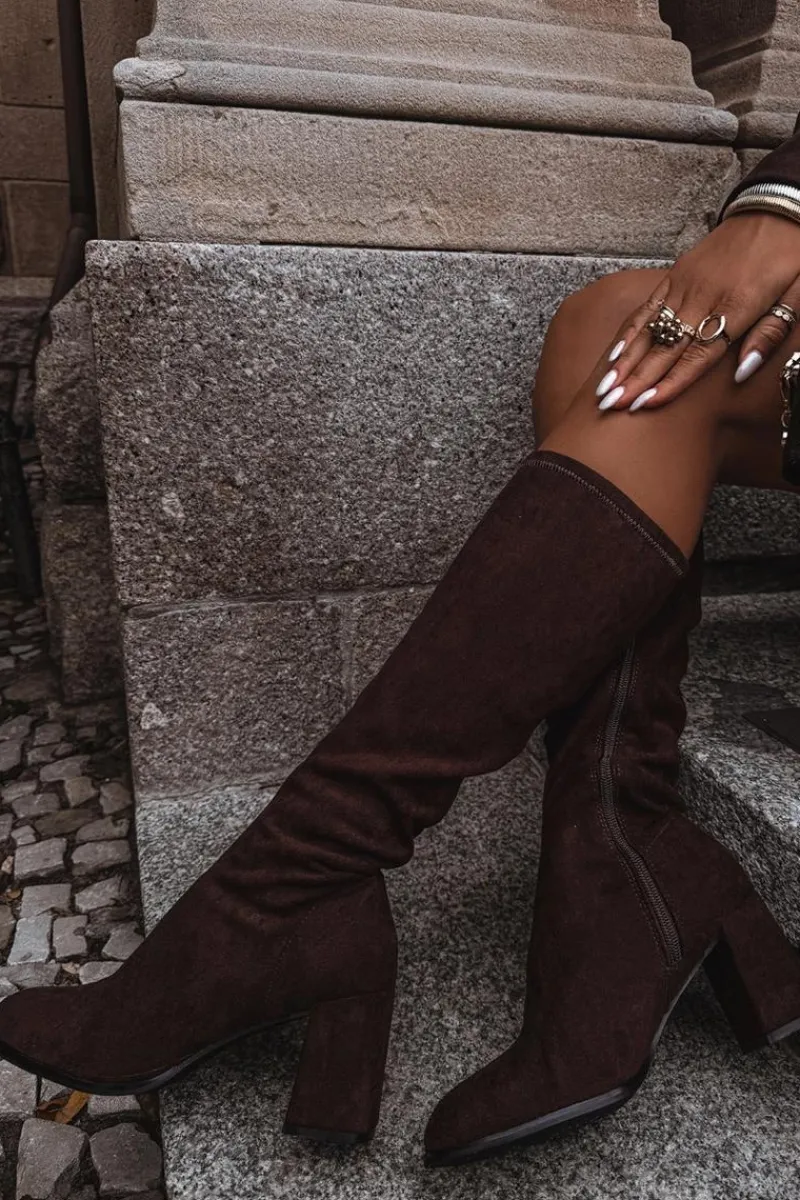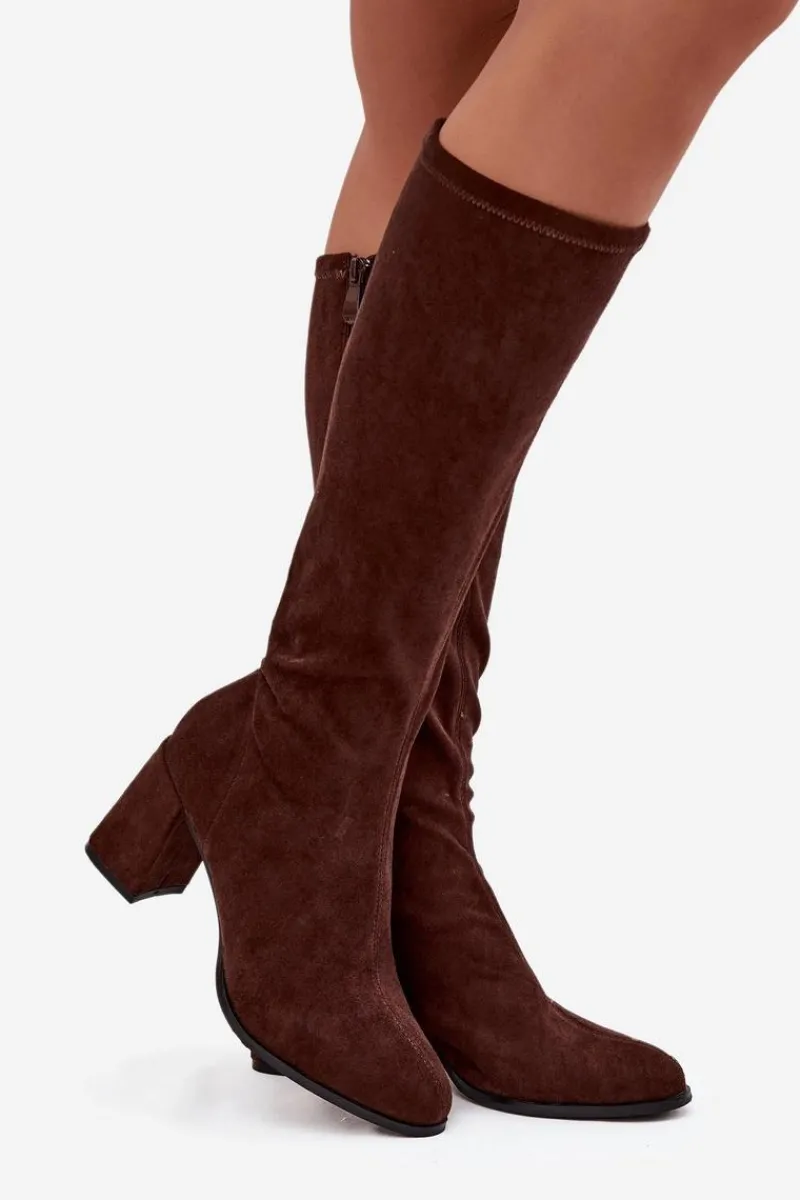 Kozaki damskie wykonane z eko zamszu to elegancka propozycja, która doskonale uzupełni jesienno-zimowe stylizacje. Model osadzony został na stabilnym obcasie typu słupek, który subtelnie wysmukla sylwetkę i dodaje jej kobiecego charakteru. Zapięcie na zamek ułatwia zakładanie i zdejmowanie butów. Prosty fason z delikatnym przeszyciem biegnącym wzdłuż cholewki z przodu i z tyłu nadaje całości klasy oraz optycznie wydłuża nogi. To uniwersalne kozaki, które świetnie prezentują się w połączeniu z sukienkami, spódnicami czy dopasowanymi spodniami, podkreślając elegancję i styl. Przy wyborze rozmiaru prosimy sugerować się tabelą rozmiarów.