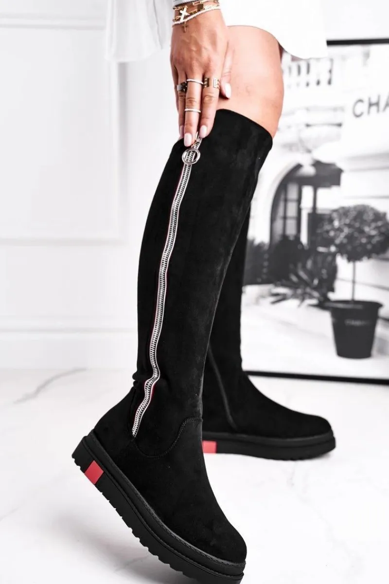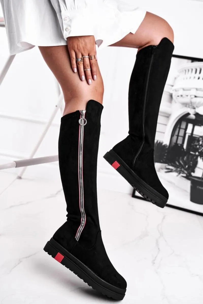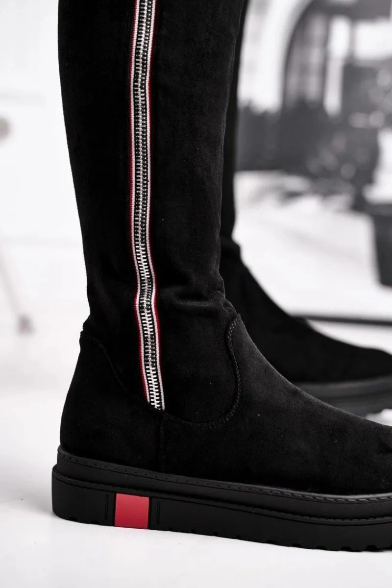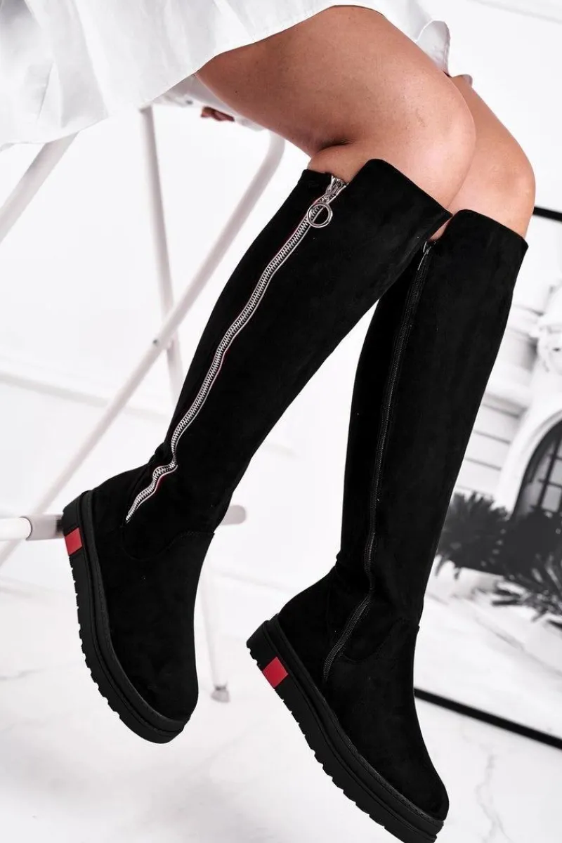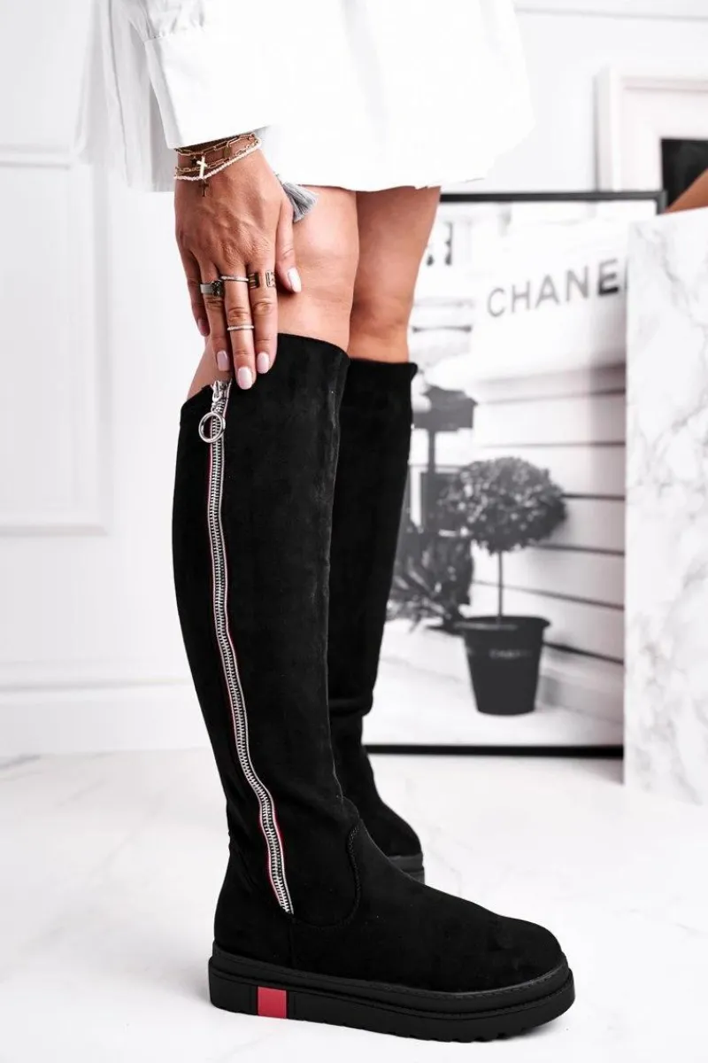Clearance Kozaki Damskie Zamszowe Czarne Melbro Damskie Kozaki Płaskie|Kozaki Zamszowe