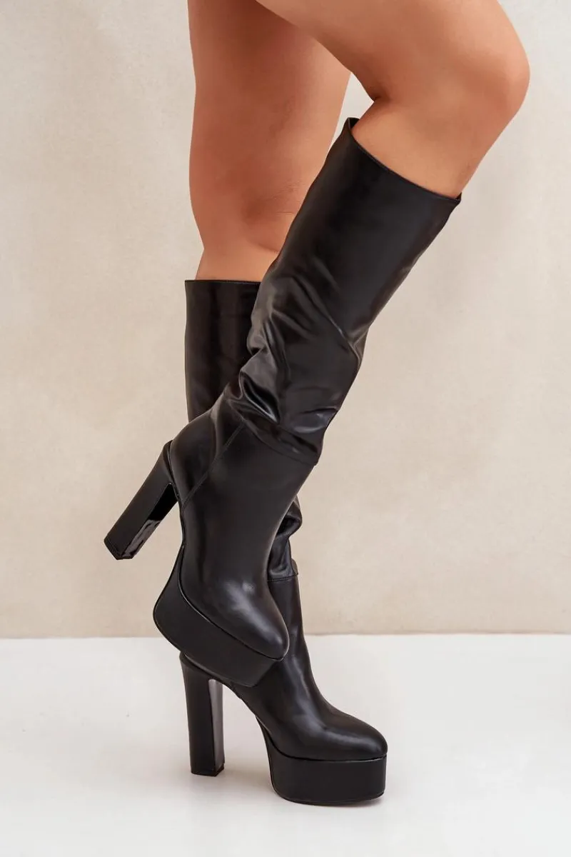 Wsuwane kozaki damskie wykonane z eko skóry. Osadzone na masywnej platformie i stabilnym obcasie typu słupek, łączą styl z komfortem. Wnętrze ocieplane kocem obuwniczym zapewnia ciepło w chłodne dni. Cholewka z delikatnym marszczeniem dodaje elegancji i subtelnego charakteru. Idealne do codziennych i bardziej stylowych zimowych stylizacji. Przy wyborze rozmiaru prosimy sugerować się tabelą rozmiarów.