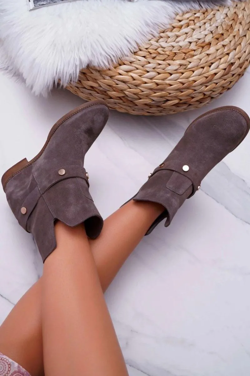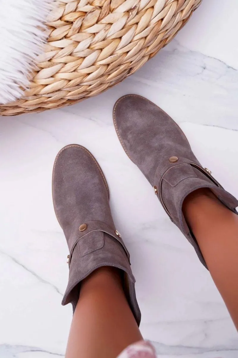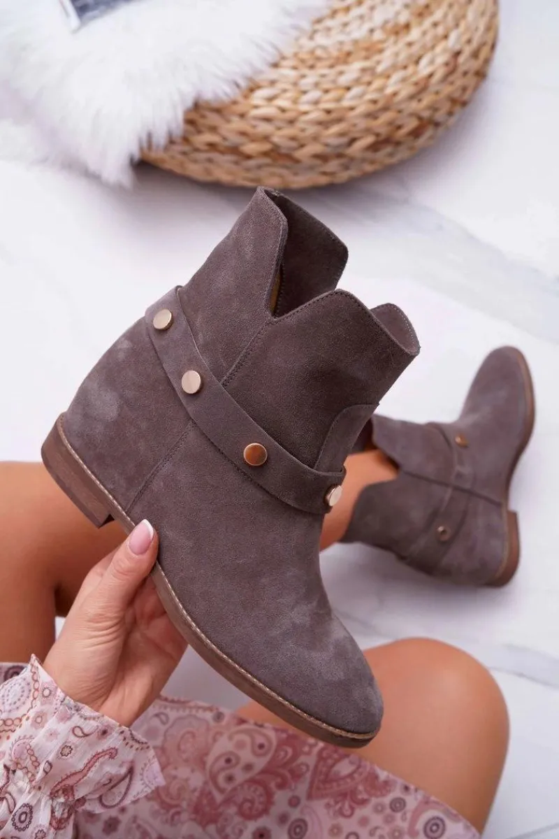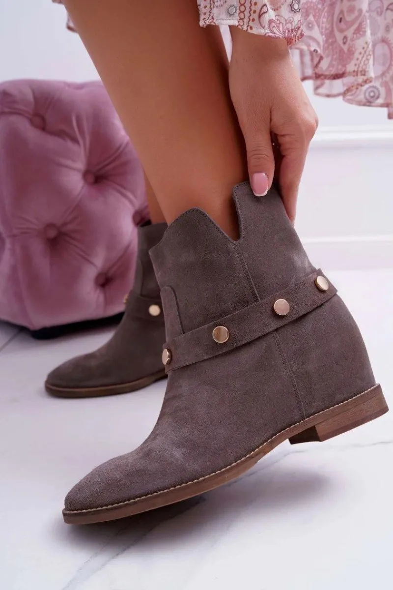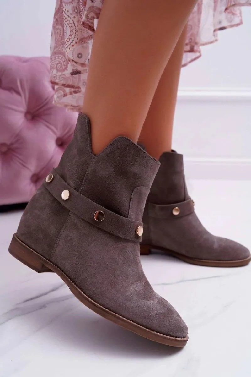 Clearance Laura Messi Botki Damskie 1890 Skóra Zamsz Szare Darmah